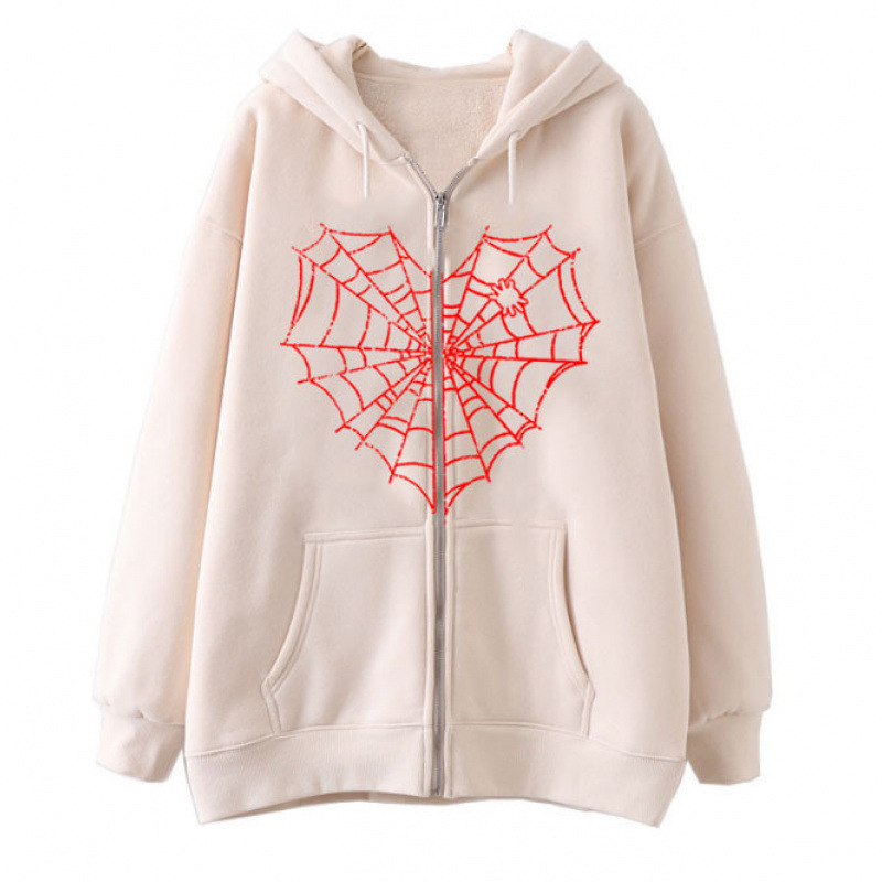 유럽과 미국의 트렌디한 브랜드 패션 스파이더 웹 프린트 지퍼 후드 가디건 남성 캐주얼 다용도 긴팔 스웨트 가디건