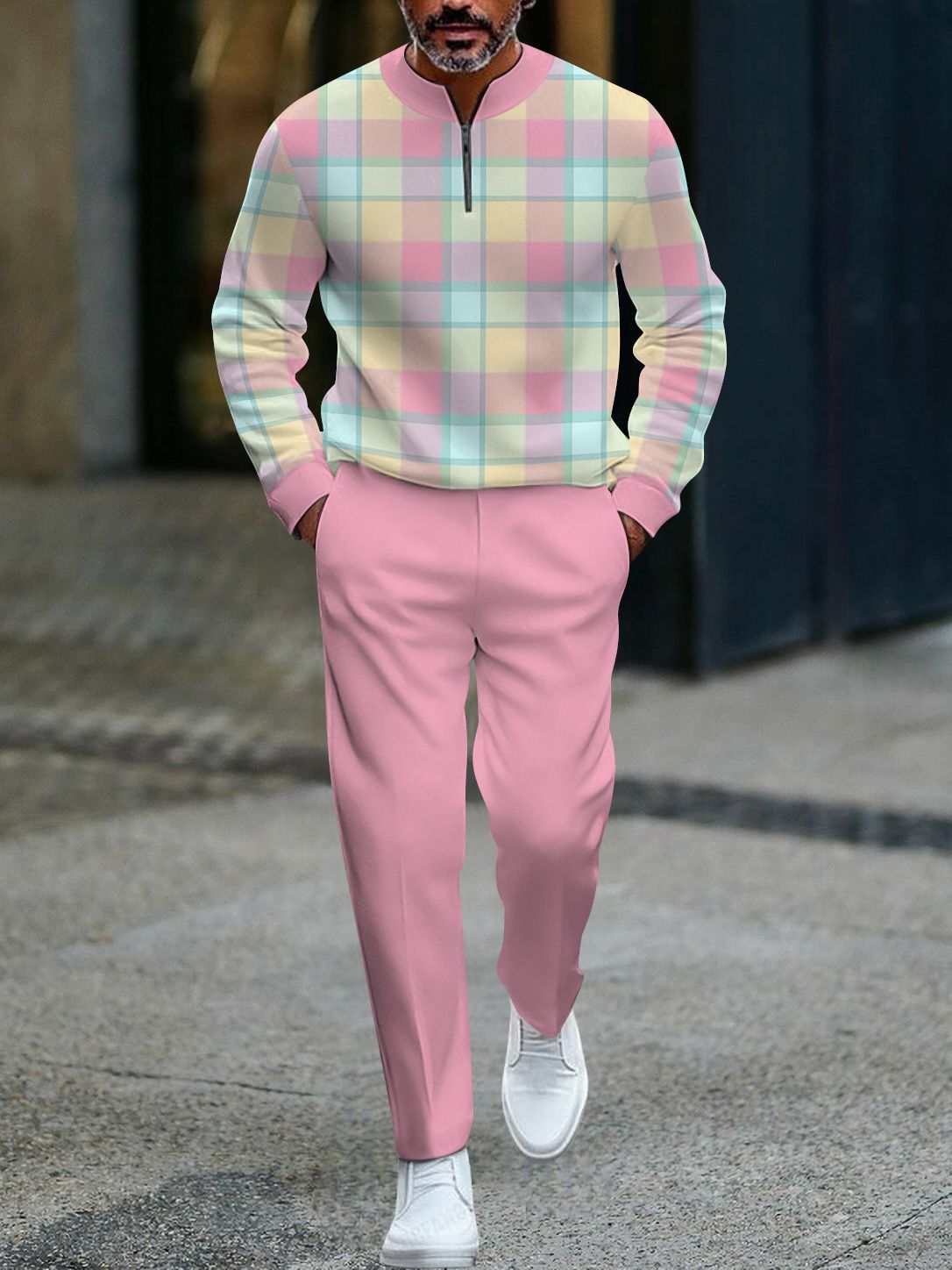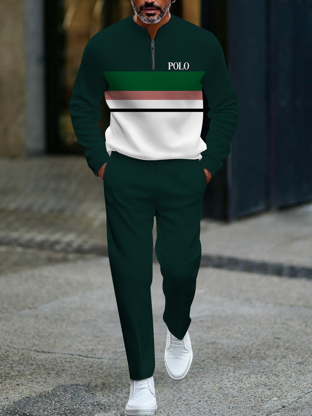 대외 무역 유럽과 미국의 아마존 새로운 하프 오픈 플래킷 지퍼 풀오버 캐주얼 패션 남성 긴팔 바지 정장스토어 가기