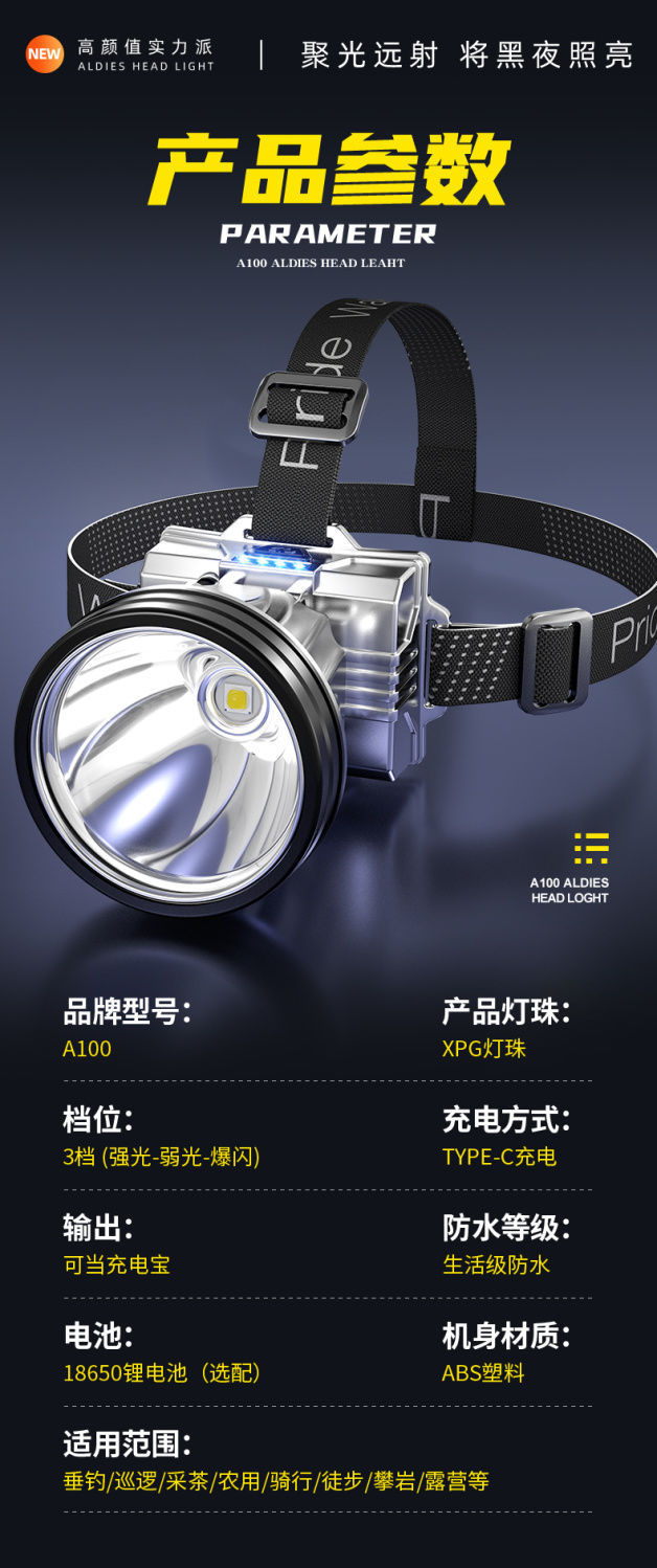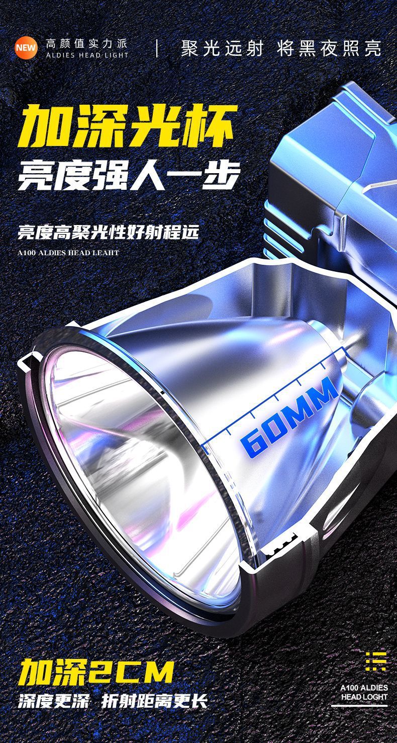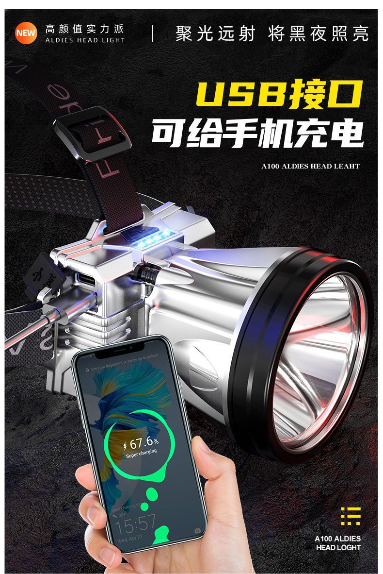 강한 빛 장거리 헤드 장착형 충전식 광부 램프 야외 실버 Kuaishou 동일한 유형 감지 Douyin 인기 노점 헤드 램프