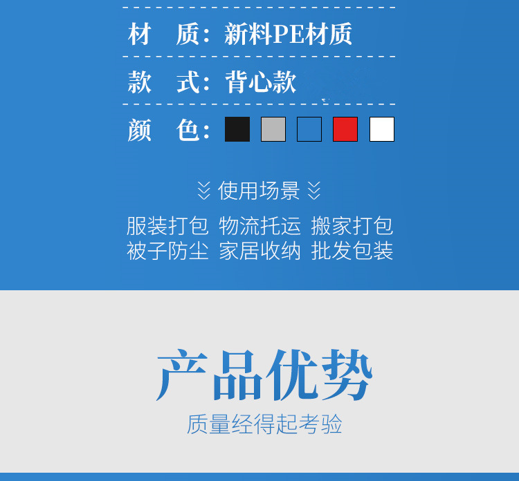 특대형 파란색 비닐봉투, 대형 두꺼운 조끼형 수납 의류 포장 이사용 휴대용 가방, 두껍고 내구성 있음