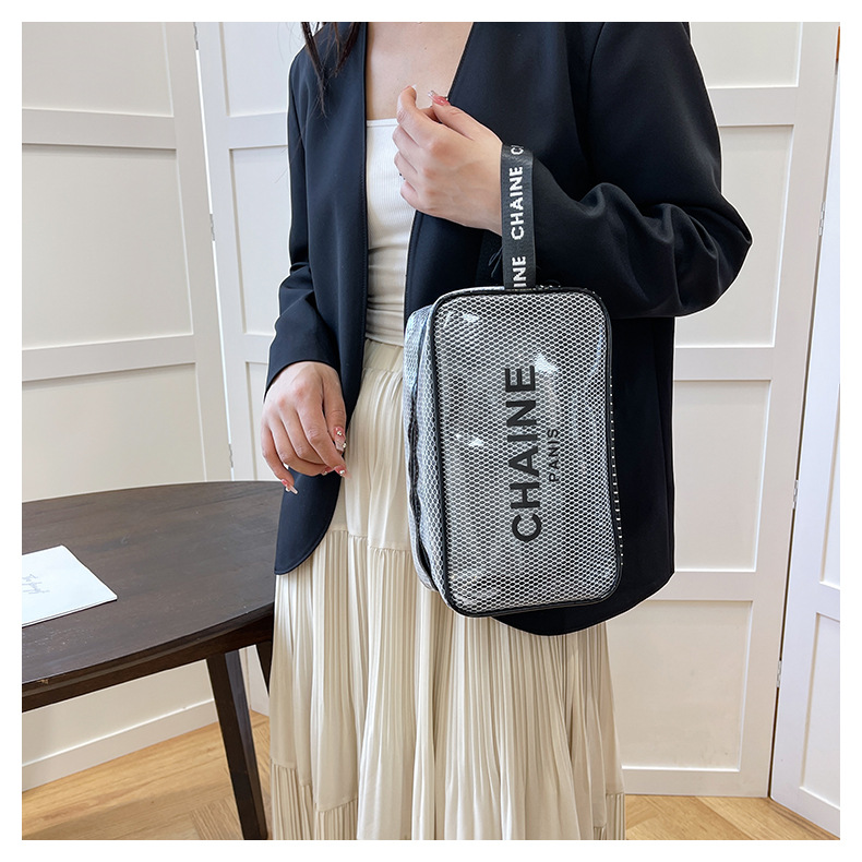 여성을위한 도매 PVC 세면 용품 가방 새로운 대용량 투명 안티 스플래시 휴대용 화장품 가방 하이 엔드 저장 가방스토어 가기