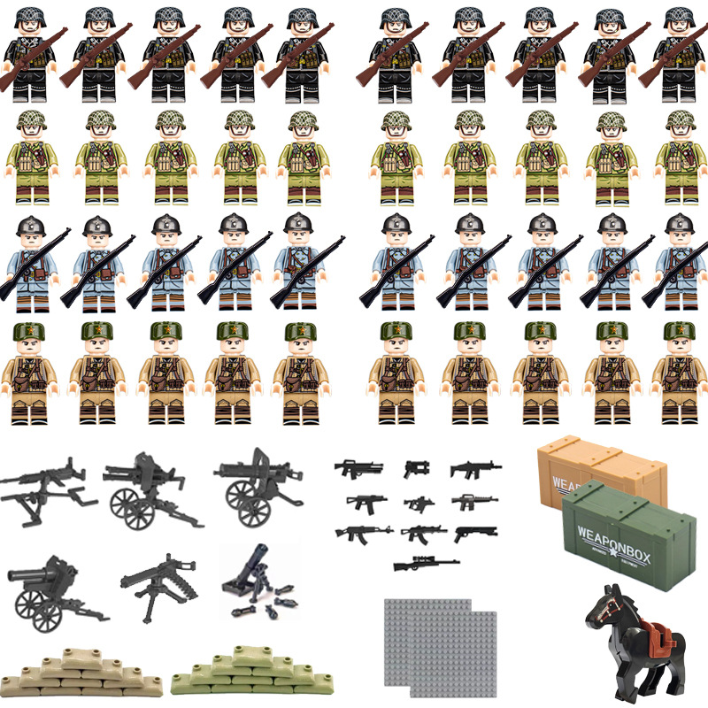 국경 간 빌딩 블록 101pcs 제 2 차 세계 대전 인형 세트 컬렉션 군사 무기 샌드 백 빌딩 블록 외국 무역 전용 장난감