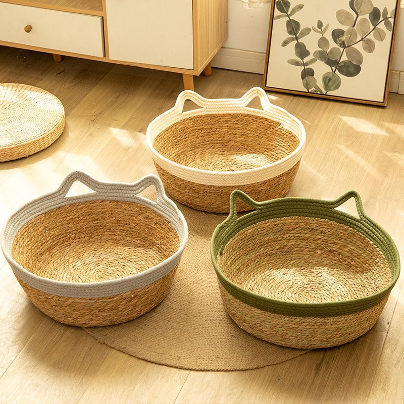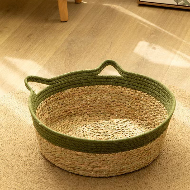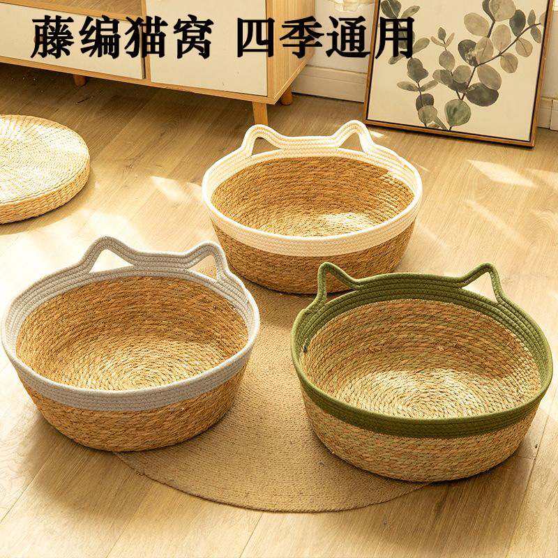 사계절 사용 가능한 등나무 고양이 둥지, 여름 고양이 스크래치 보드, 일체형 짠 개 둥지 매트, 애완동물 토끼 둥지 및 고양이 용품스토어 가기