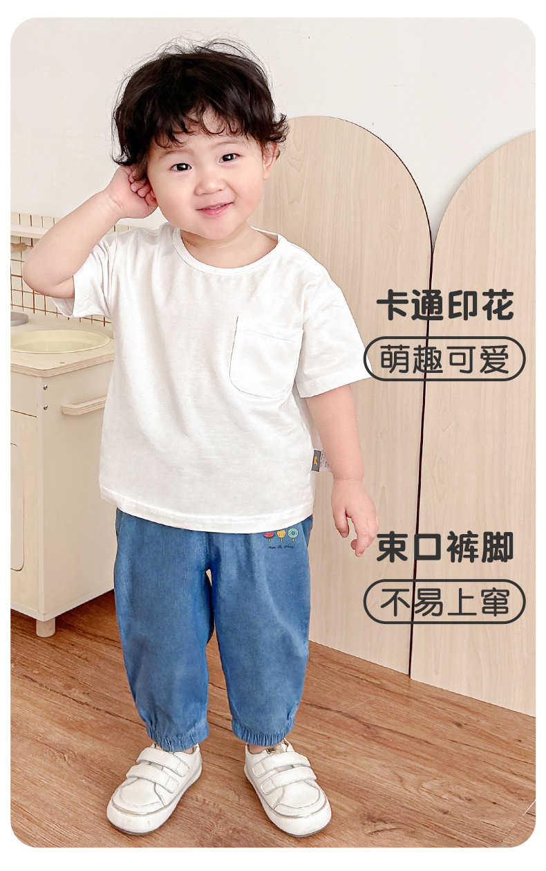 아기 청바지 봄, 가을, 여름 소년과 소녀 순수 면화 얇은 겉옷 가랑이없는 어린이 모기 방지 바지 아기 바지스토어 가기