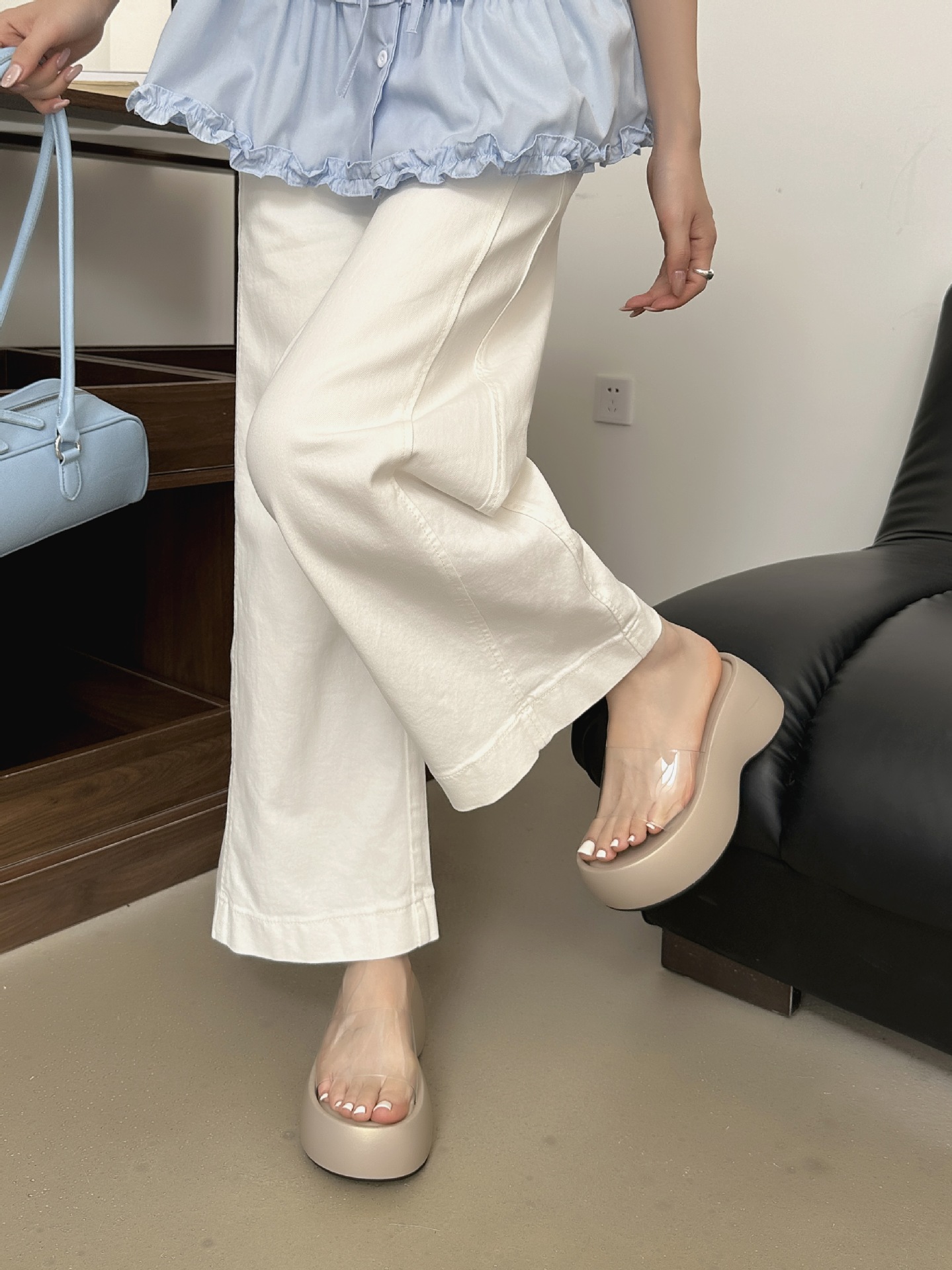 2025 새로운 여름 스타일 두꺼운 밑창 웨지 힐 투명한 플랫폼 패션 아우터 캐주얼 비치 하이힐 샌들 여성용스토어 가기
