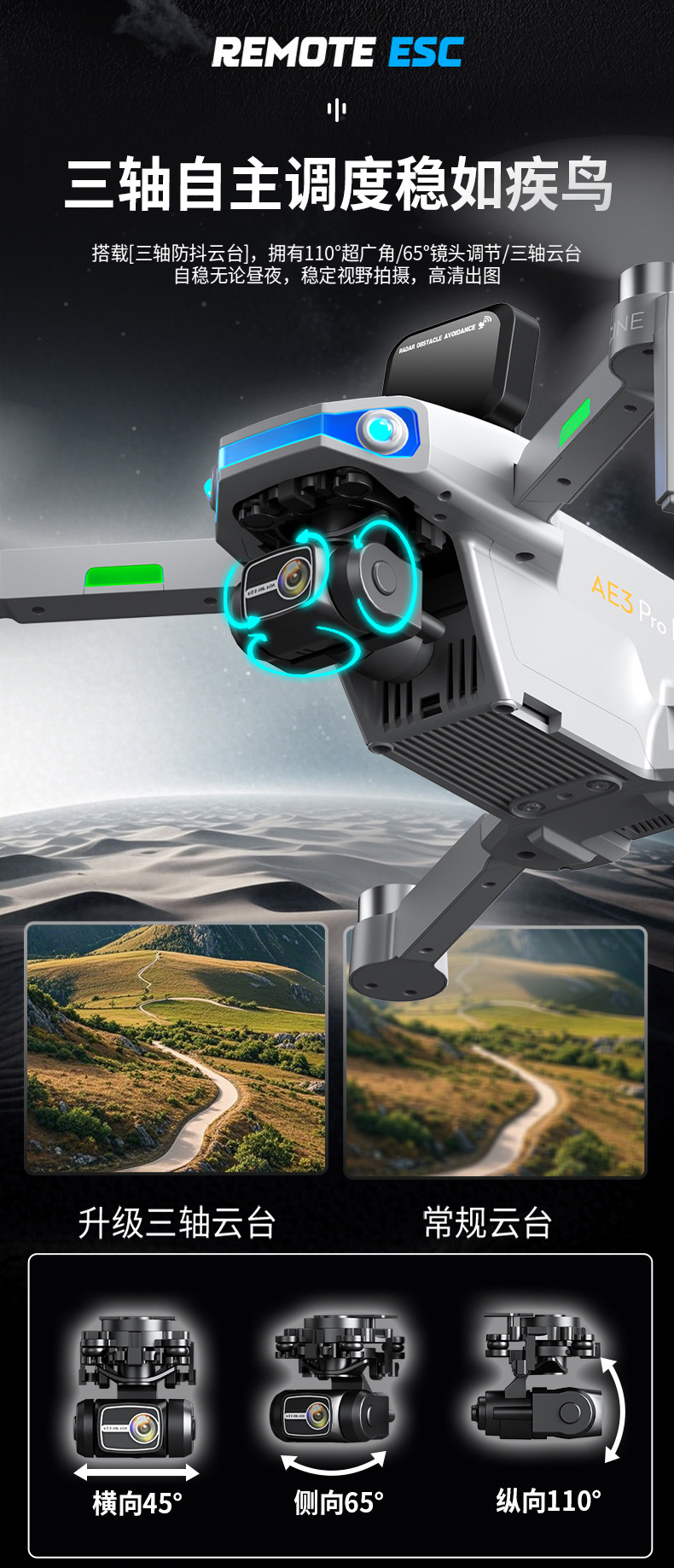 국경 간 AE3ProMax 원격 제어 드론 HD 3축 짐벌 5.5inch 터치 스크린 원격 제어 레이저 장애물 회피스토어 가기