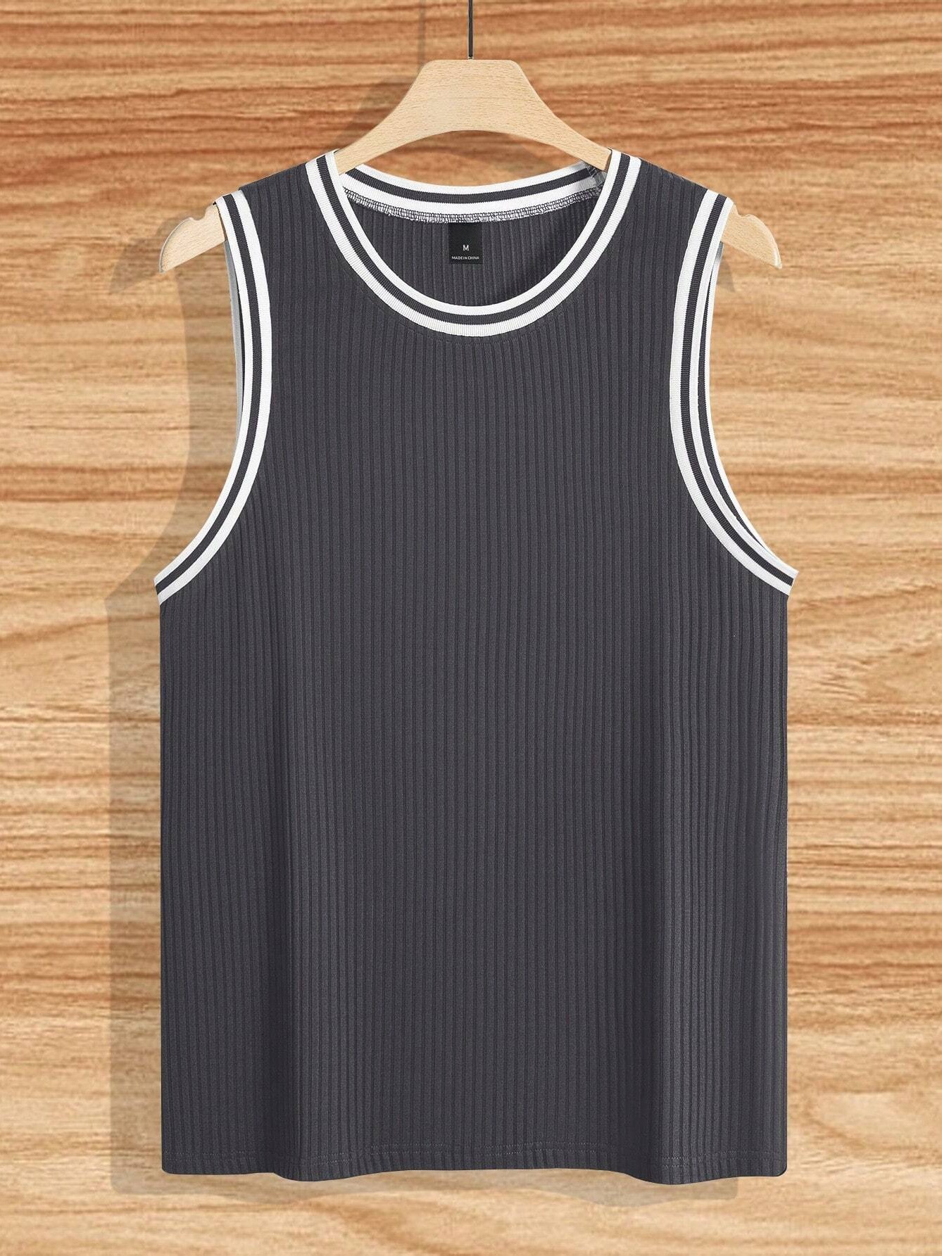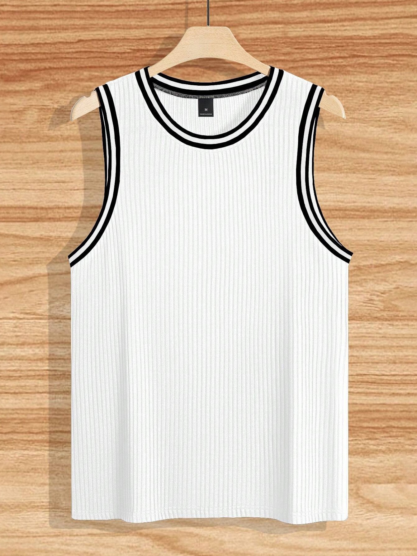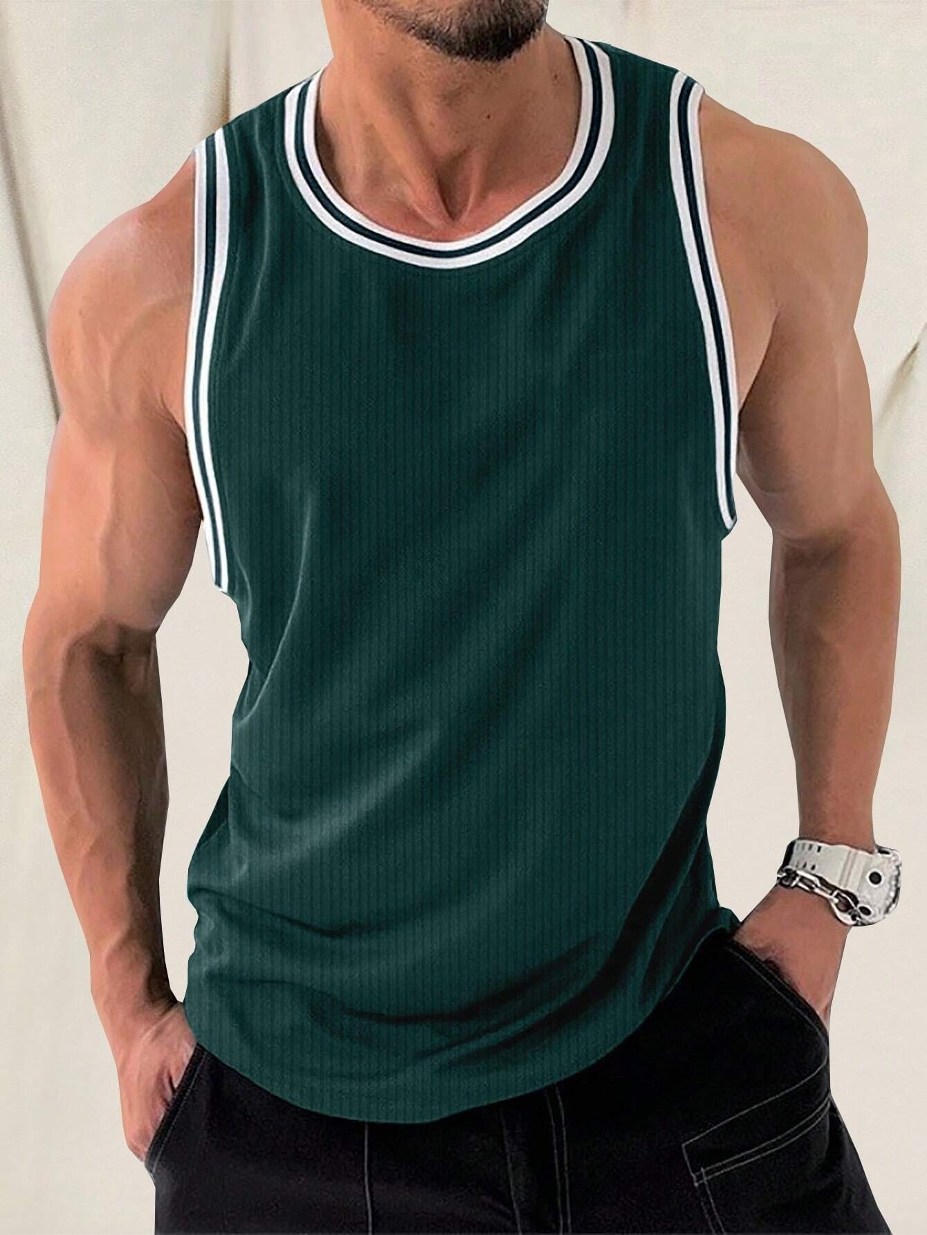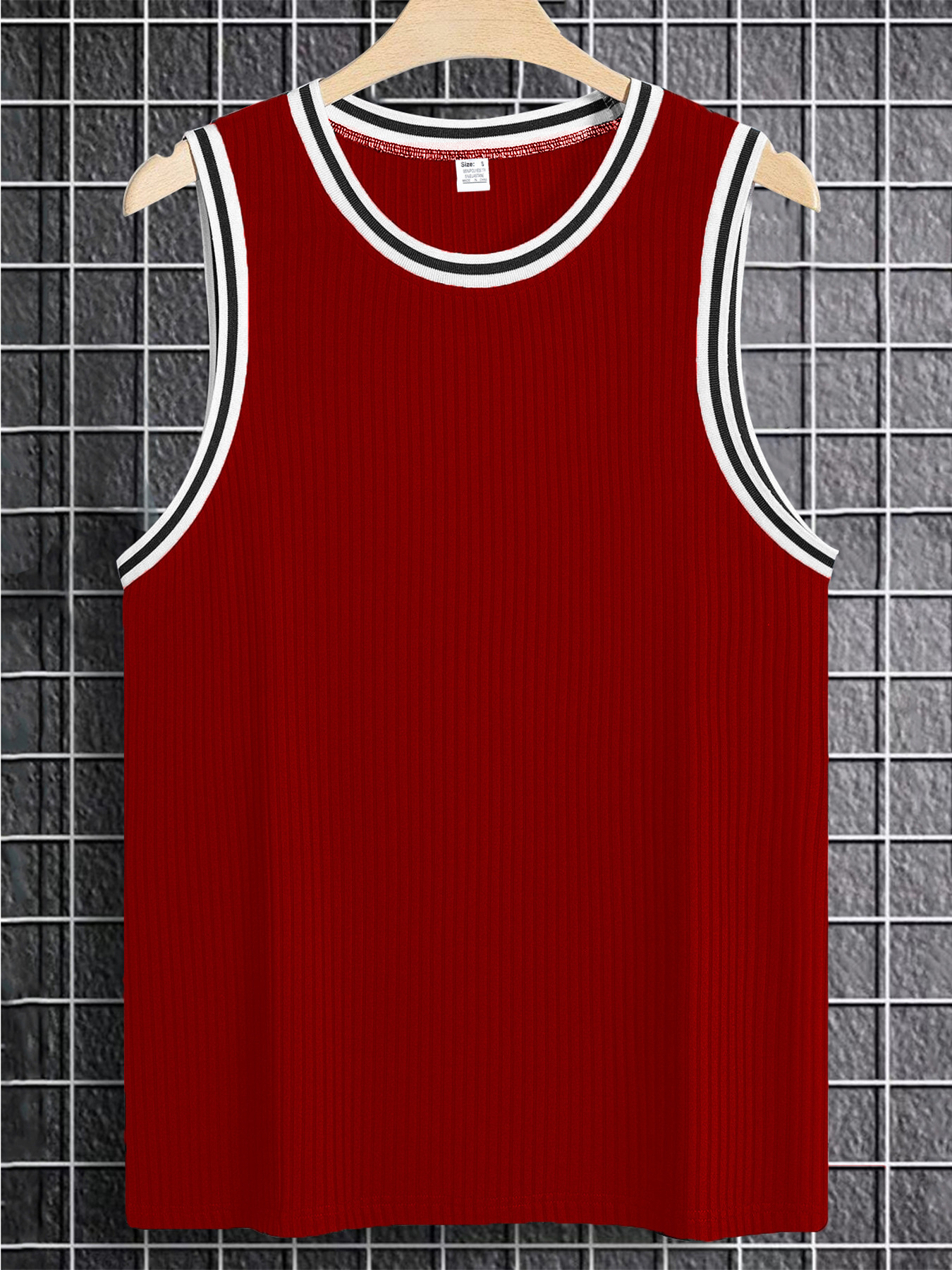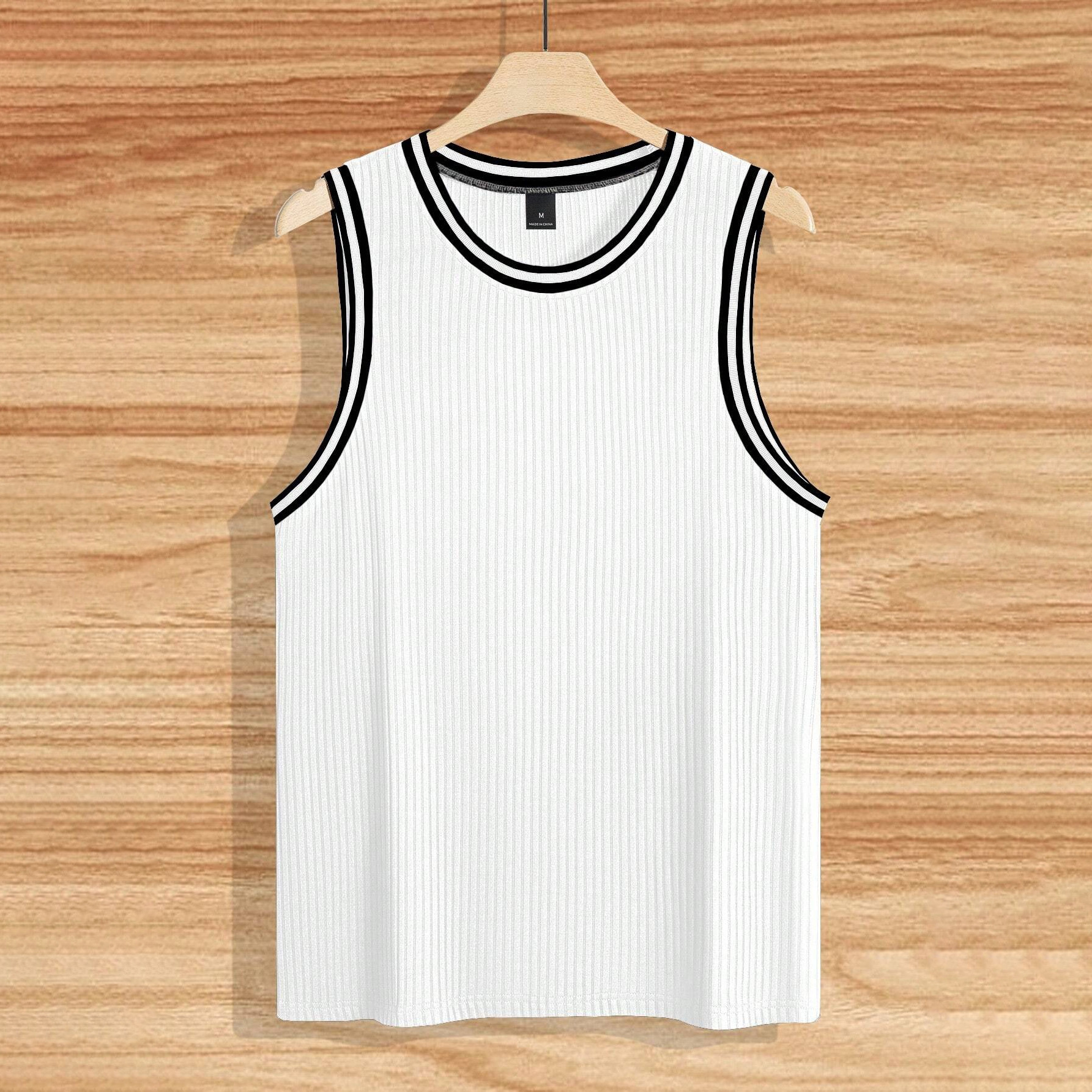 유럽 ​​크로스보더 대외 무역 여름 니트 세로 줄무늬 피트니스 스포츠 슬림 조끼 남성용 I자형 컬러 블록 조끼