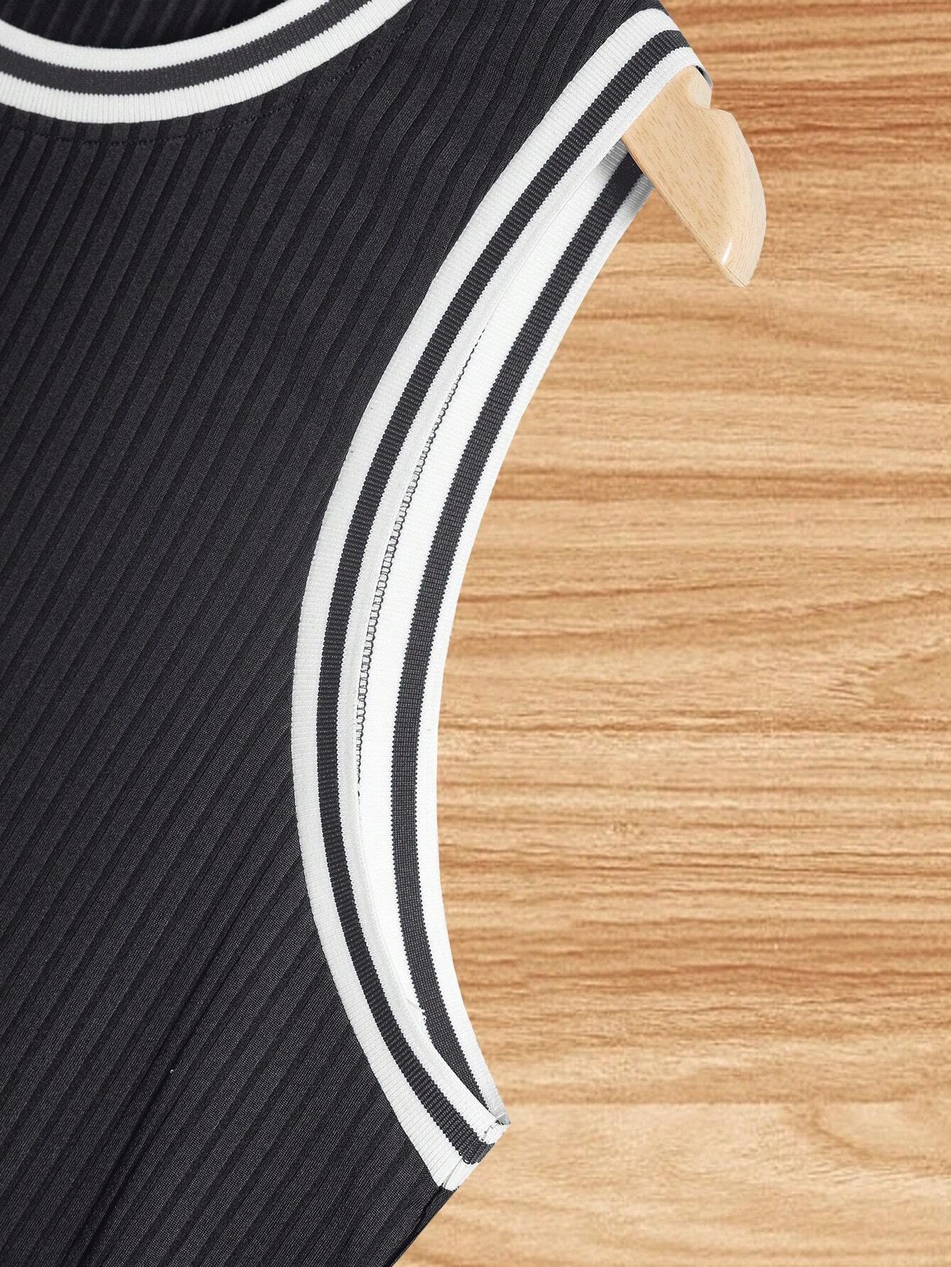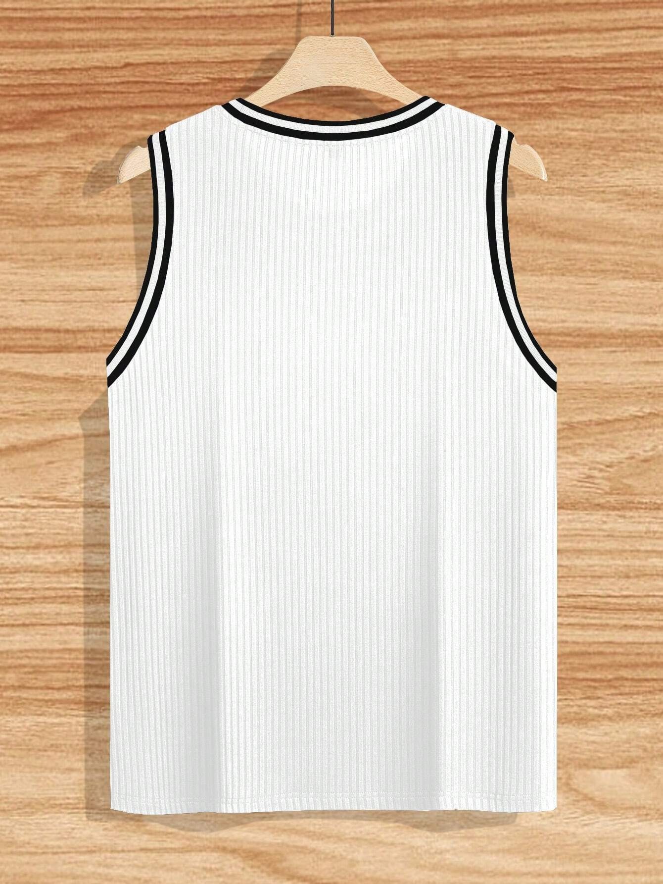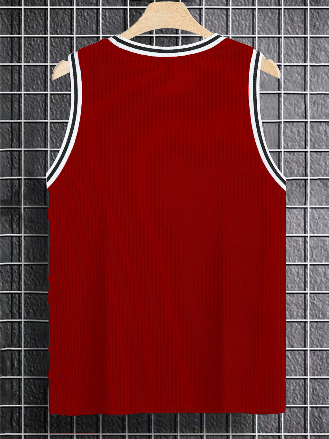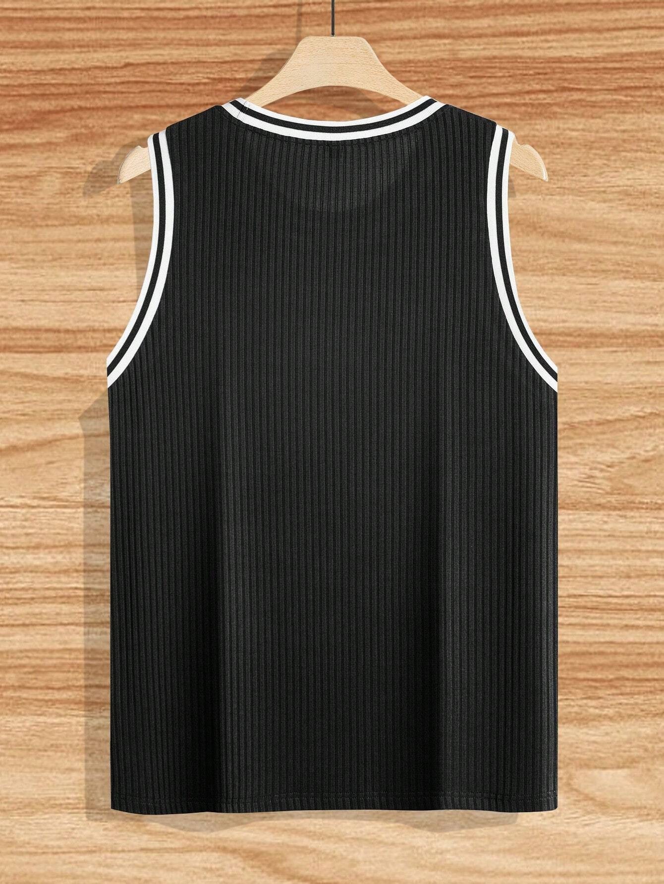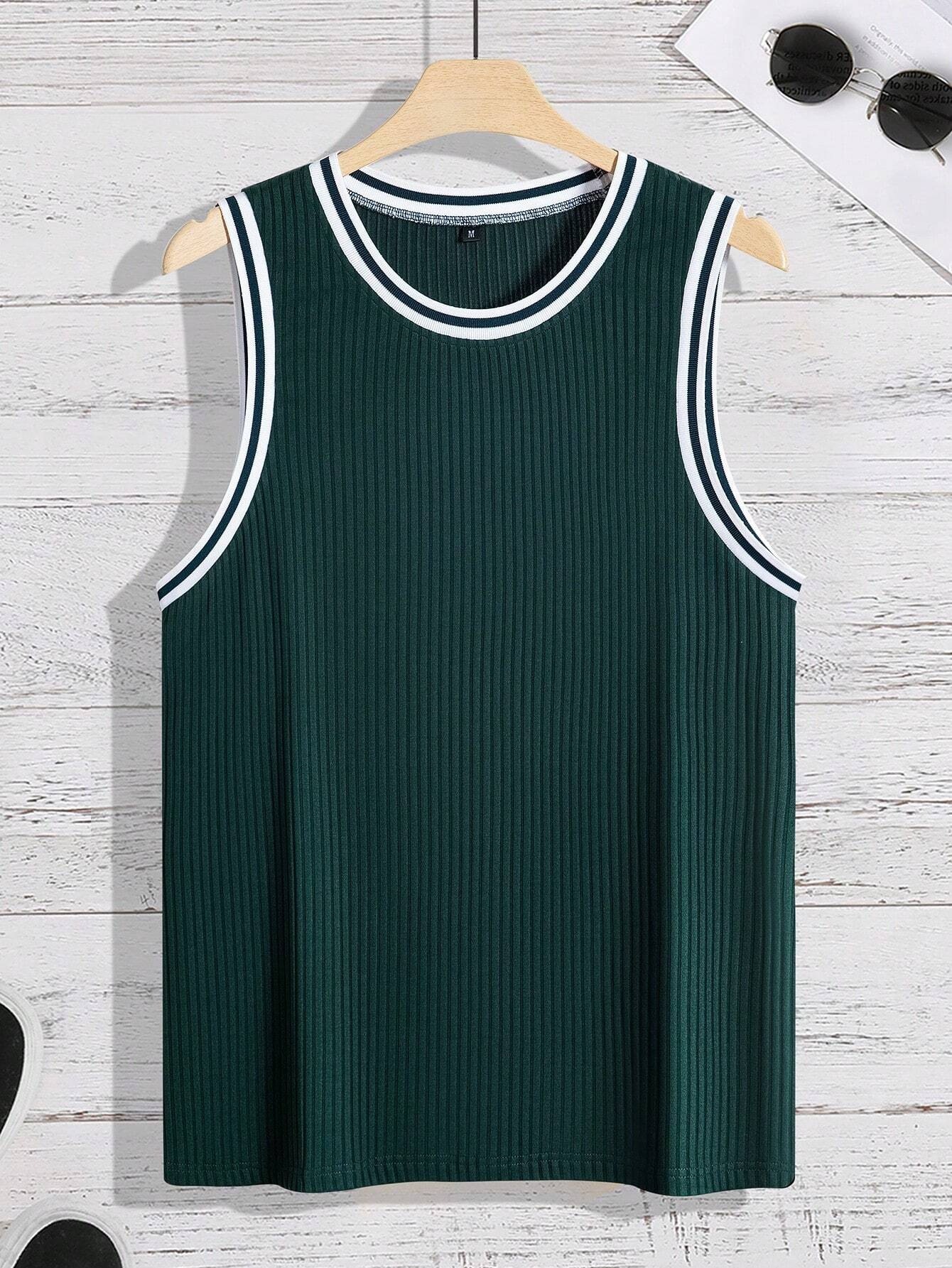 유럽 ​​크로스보더 대외 무역 여름 니트 세로 줄무늬 피트니스 스포츠 슬림 조끼 남성용 I자형 컬러 블록 조끼
