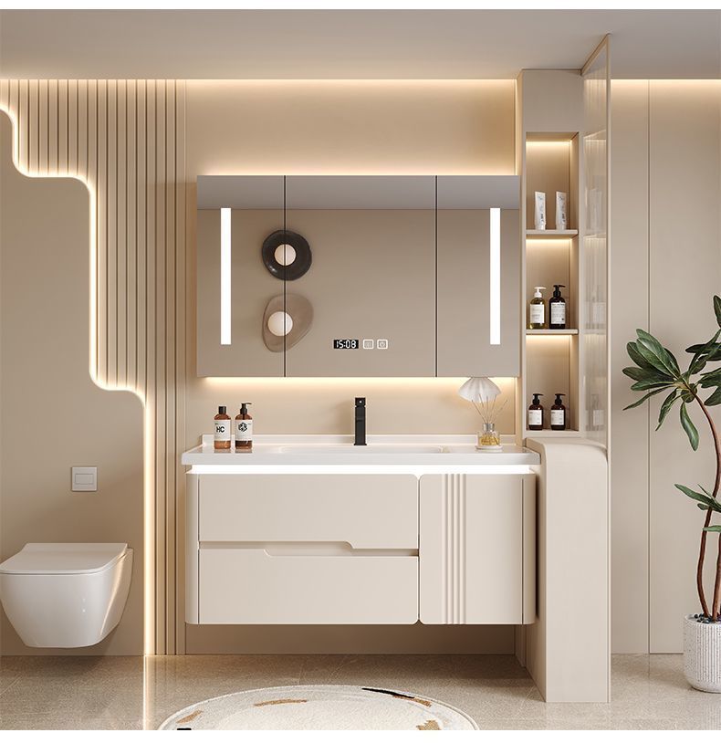 오크 크림 세라믹 세면대 일체형 욕실 캐비닛 조합 간이 세면대 스마트 세면대 욕실