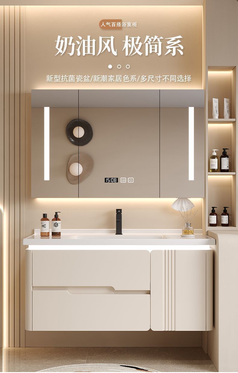 오크 크림 세라믹 세면대 일체형 욕실 캐비닛 조합 간이 세면대 스마트 세면대 욕실스토어 가기