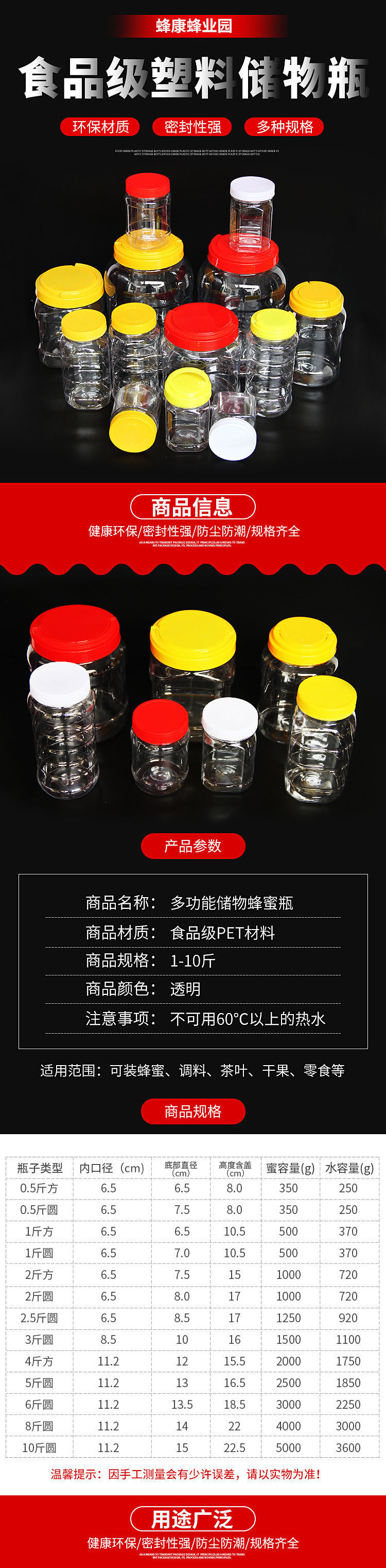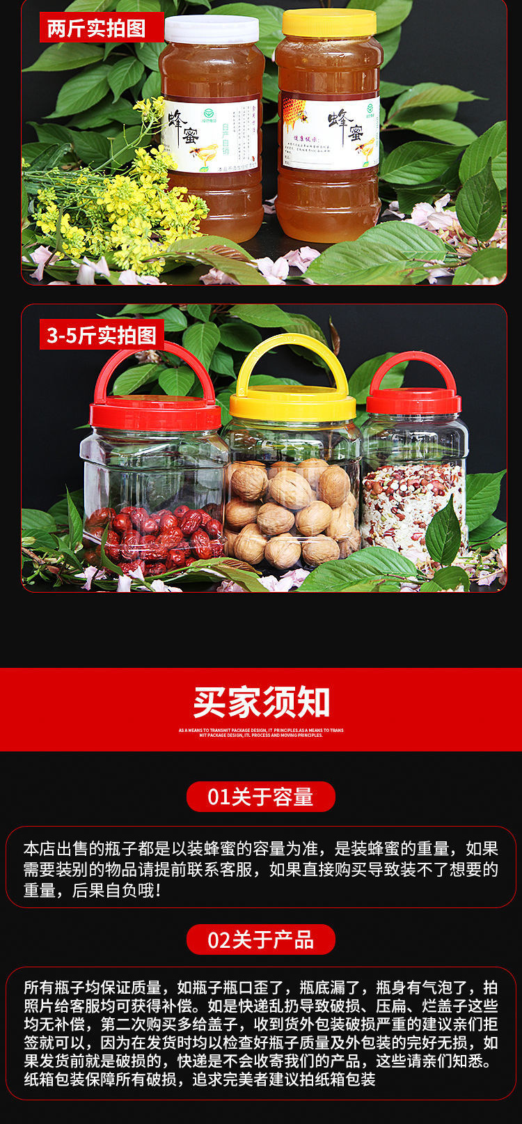 꿀병 플라스틱병 1000g 식품 밀봉병 뚜껑이 있는 두꺼운 투명 1kg 2kg 1.5kg 팩 0.5kg 특수스토어 가기