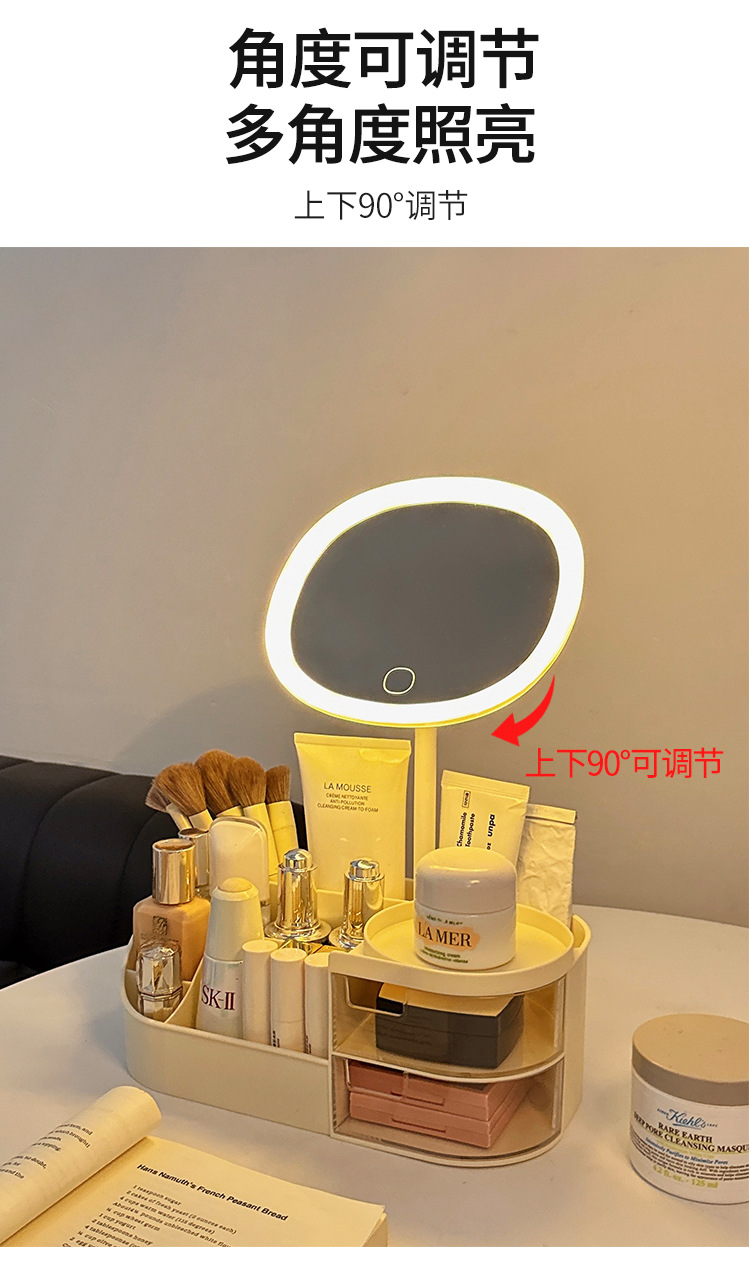 조명이있는 거울 화장 거울 데스크탑 데스크탑 보관함 통합 화장품 서랍 형 보관함 여성용 화장 거울스토어 가기