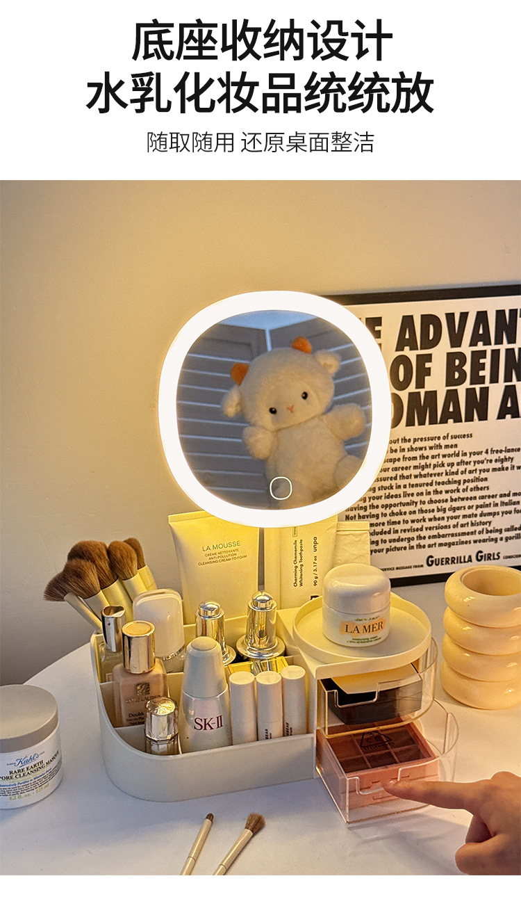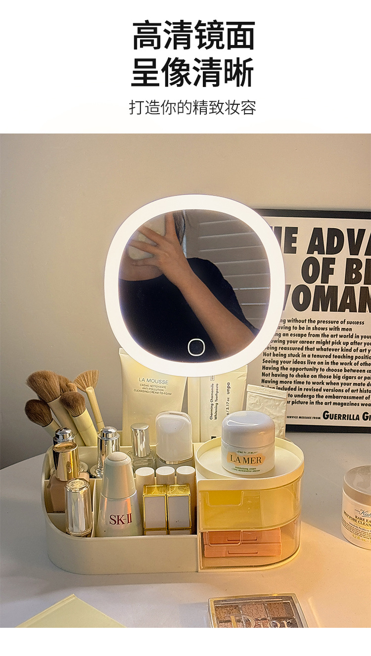 조명이있는 거울 화장 거울 데스크탑 데스크탑 보관함 통합 화장품 서랍 형 보관함 여성용 화장 거울