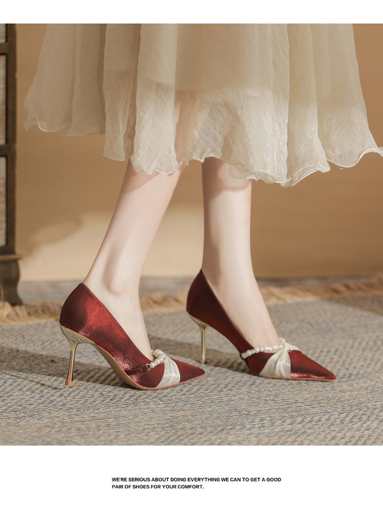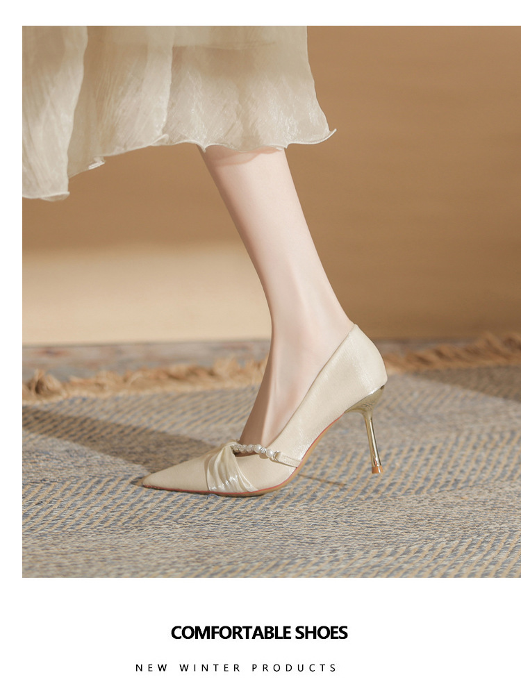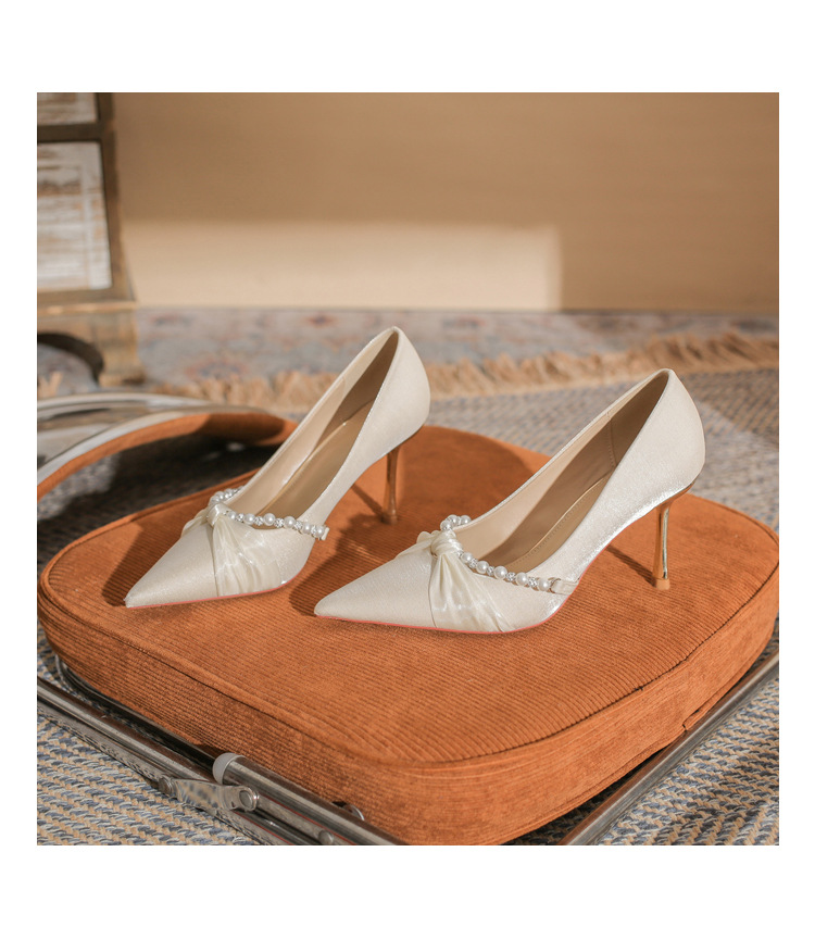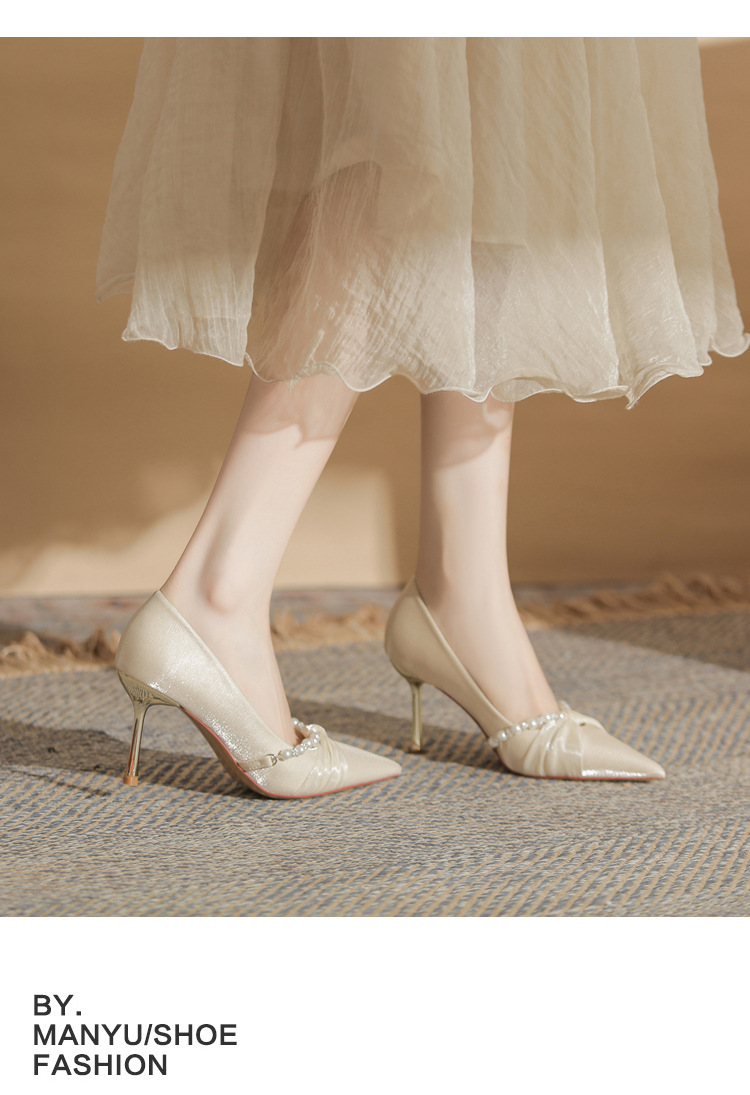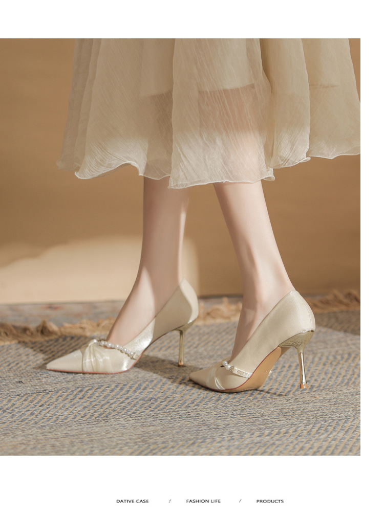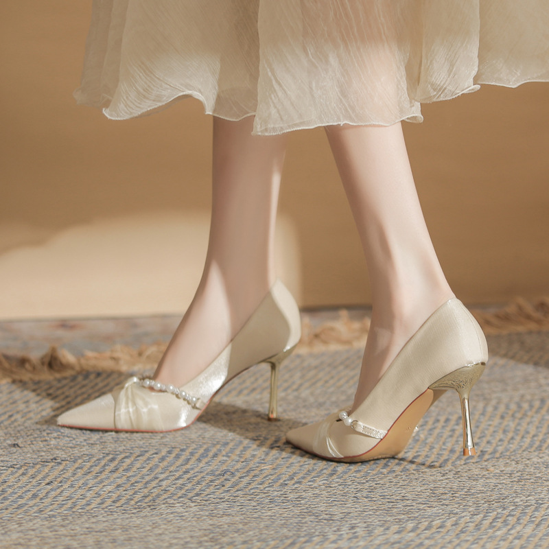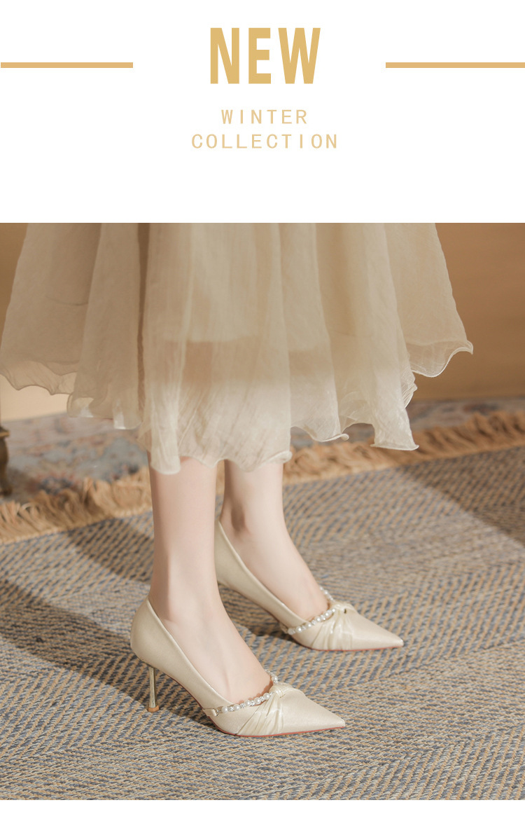 Jingang H8091 웨딩 슈즈 신혼 신발 여성용 펌프스 하이힐 2025 새로운 봄, 가을 여성용 스틸레토 힐 포인티드 슈즈스토어 가기