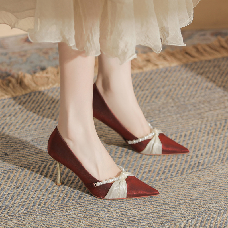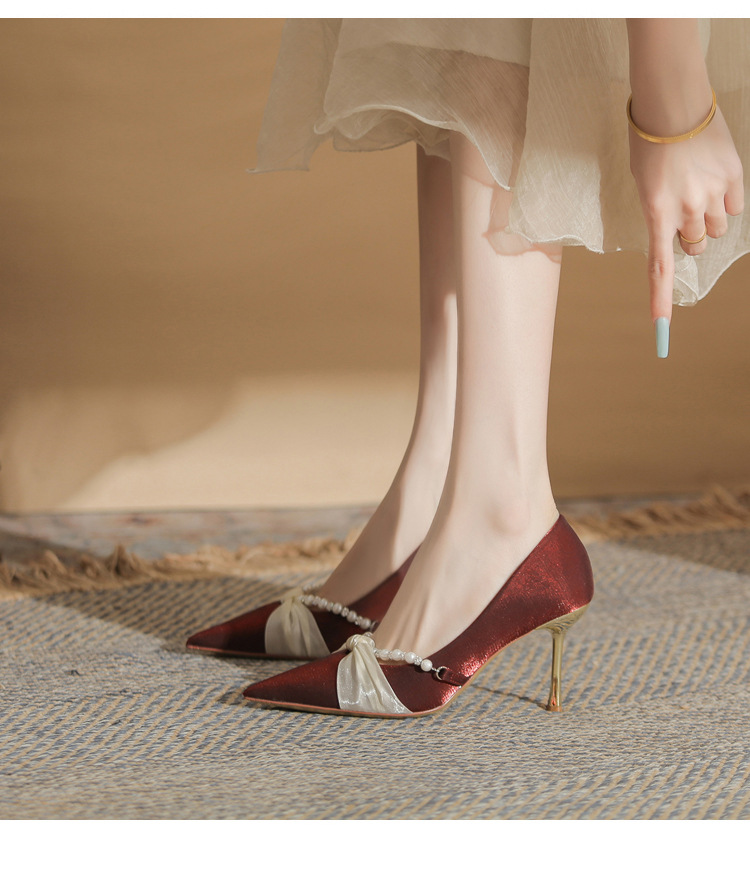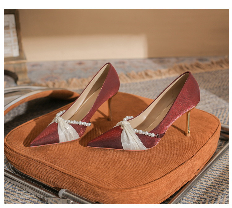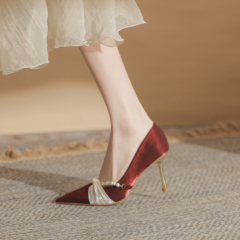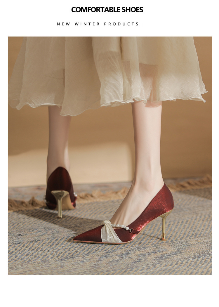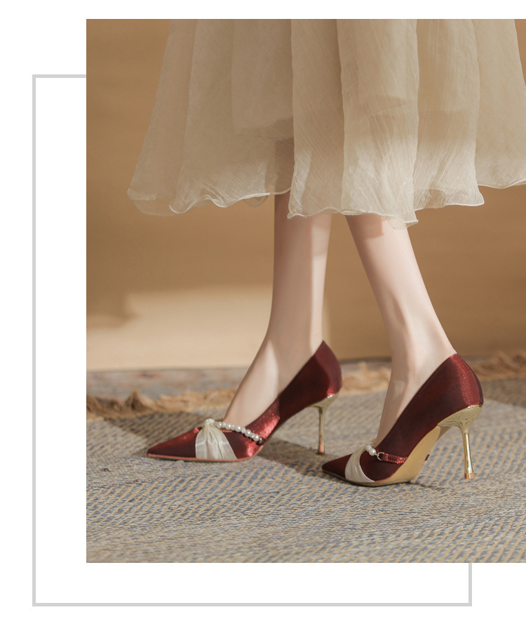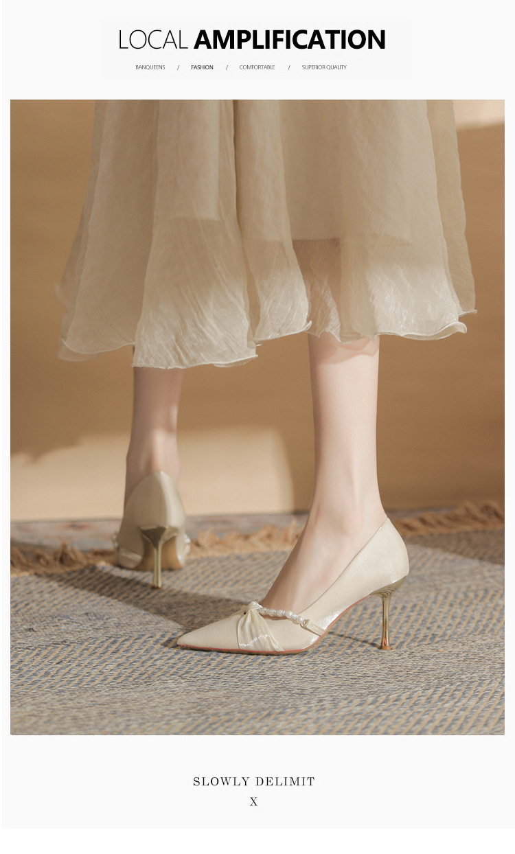 Jingang H8091 웨딩 슈즈 신혼 신발 여성용 펌프스 하이힐 2025 새로운 봄, 가을 여성용 스틸레토 힐 포인티드 슈즈스토어 가기