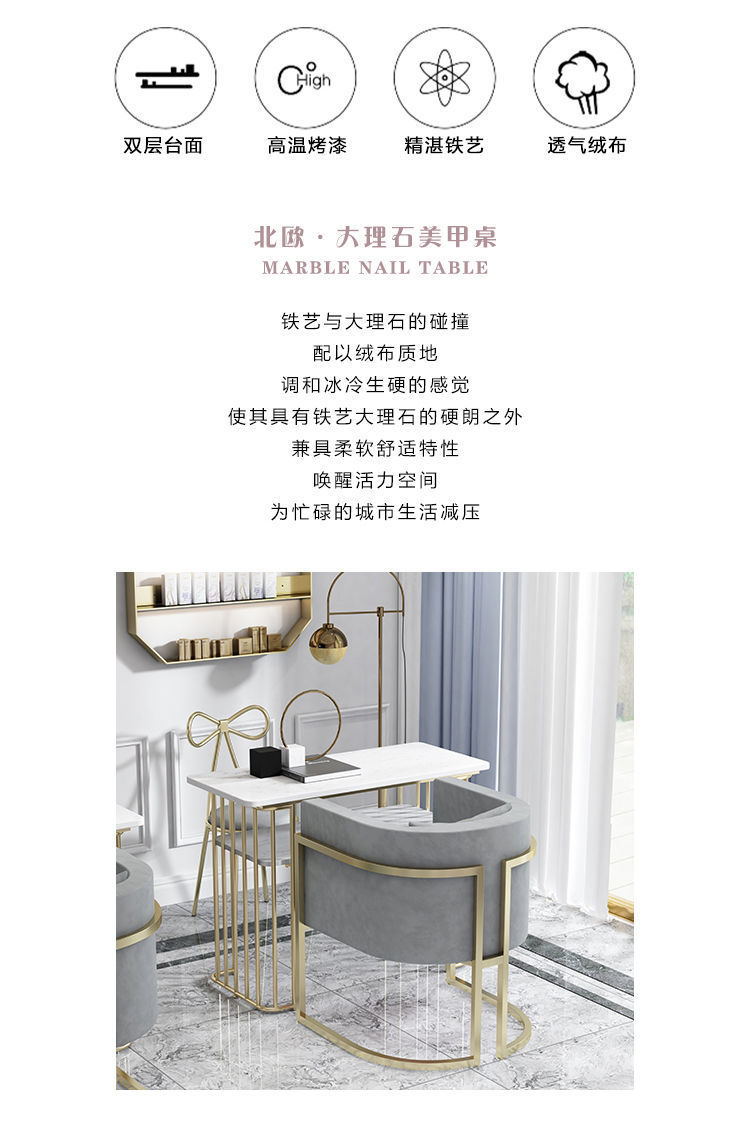 단철 더블 레이어 대리석 매니큐어 테이블과 의자 세트 인터넷 연예인 소파 의자 싱글 및 더블 골드 매니큐어 테이블과 의자 공장 도매