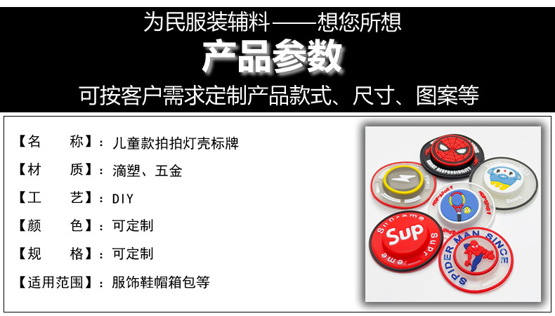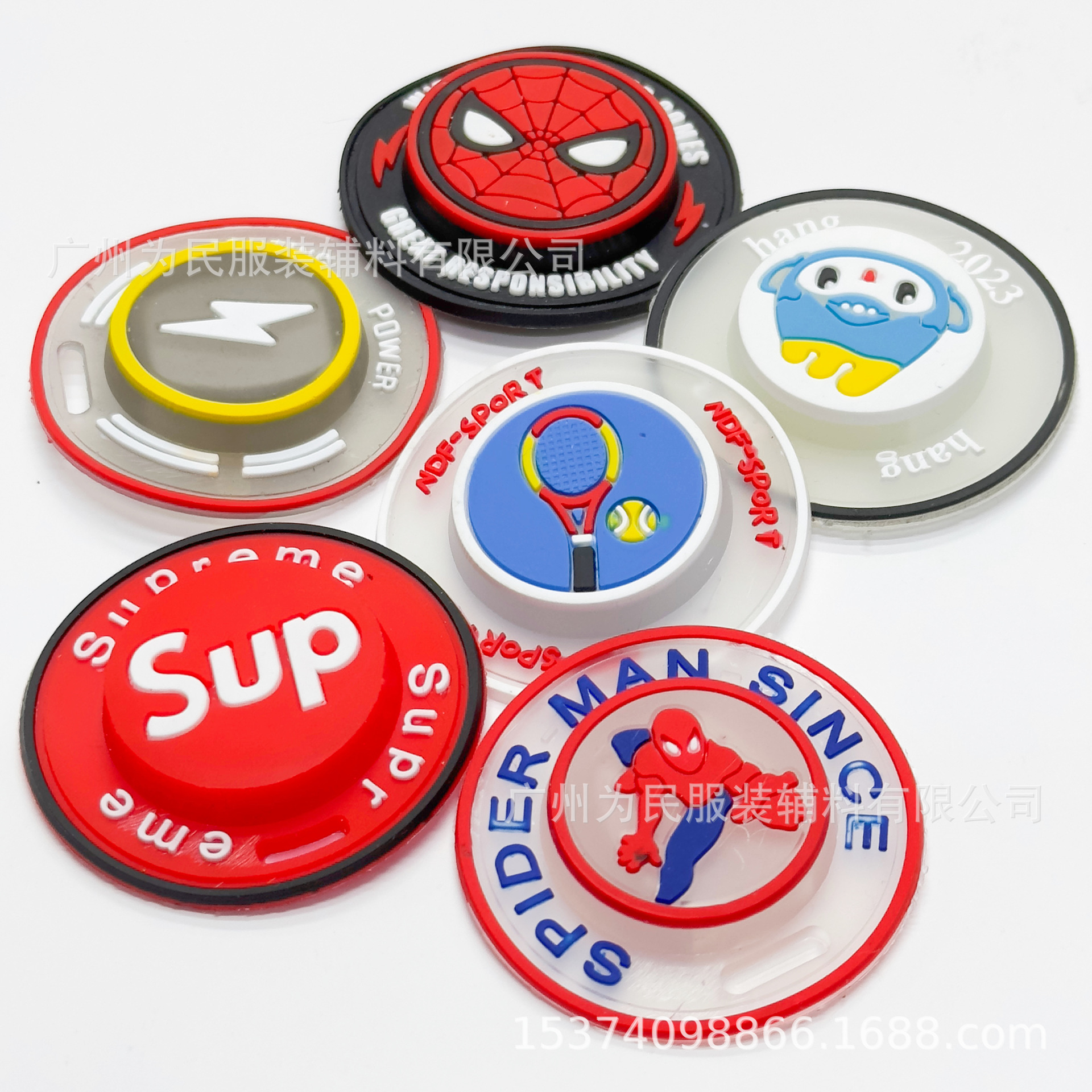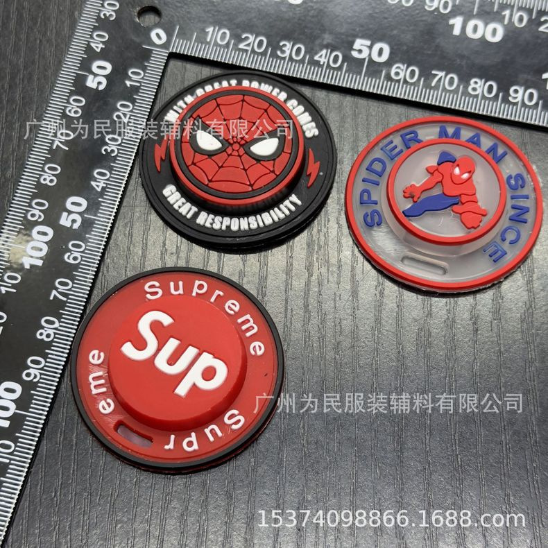 다운스트림 인기 판매 섬유 액세서리 맞춤형 다용도 스파이더맨 드롭 플라스틱 실리콘 스탬프 점멸등 쉘 원형 크리에이티브 간판