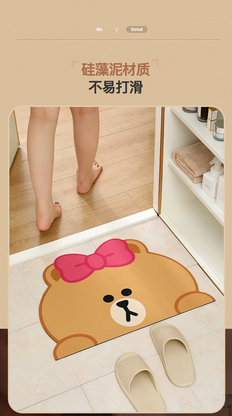 욕실 바닥 매트, 욕실 흡수성 바닥 매트, 가정용 규조토 진흙 미끄럼 방지 발 매트, 출입구 매트, 작은 카펫