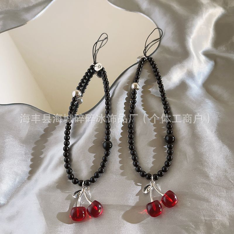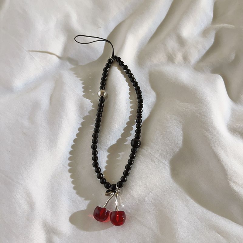 레트로 레드 체리 팔찌 휴대 전화 케이스 ins 페르시 여성 팔찌 일본과 한국 DIY 여성 블랙 펜던트 팔찌 페르시스토어 가기