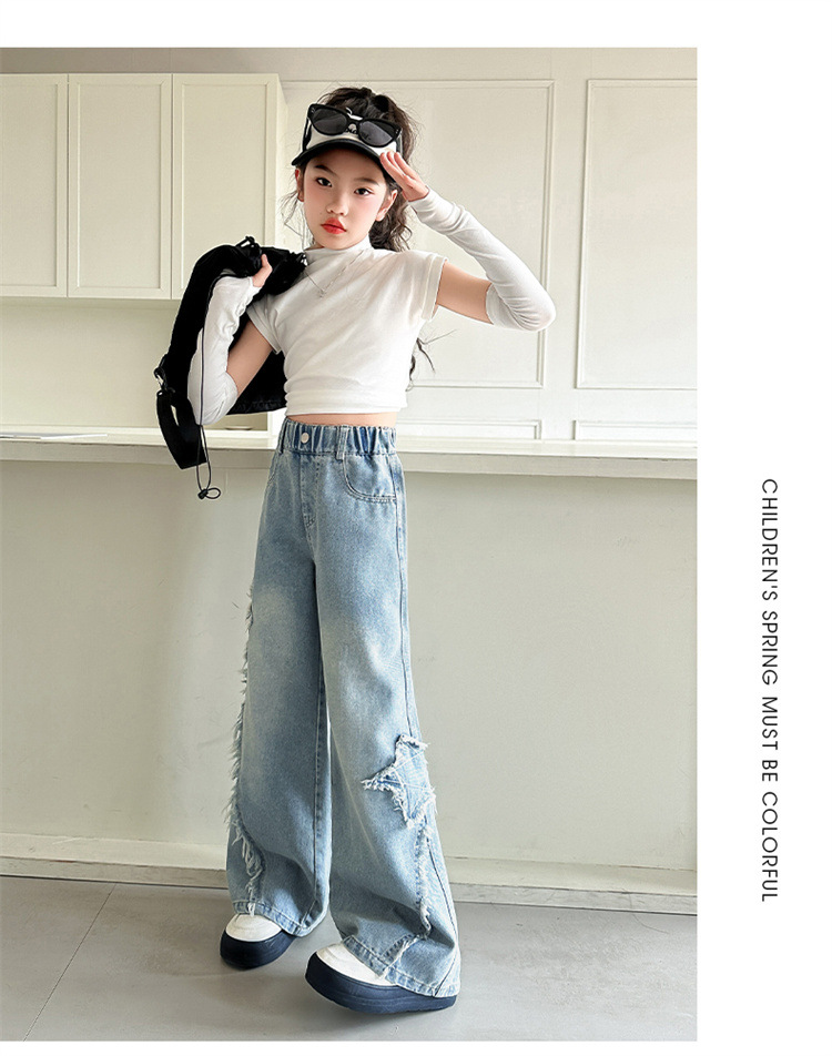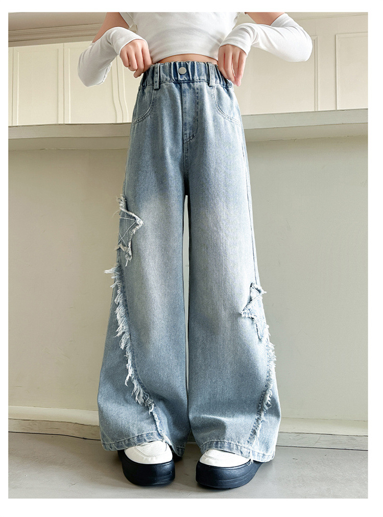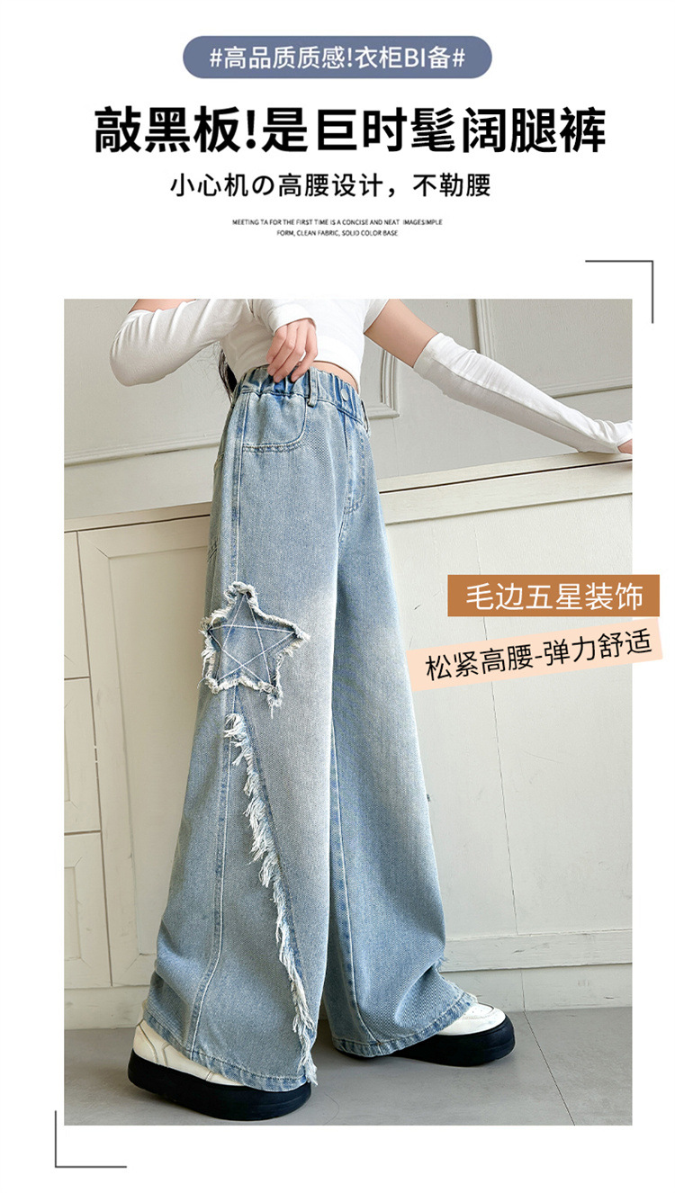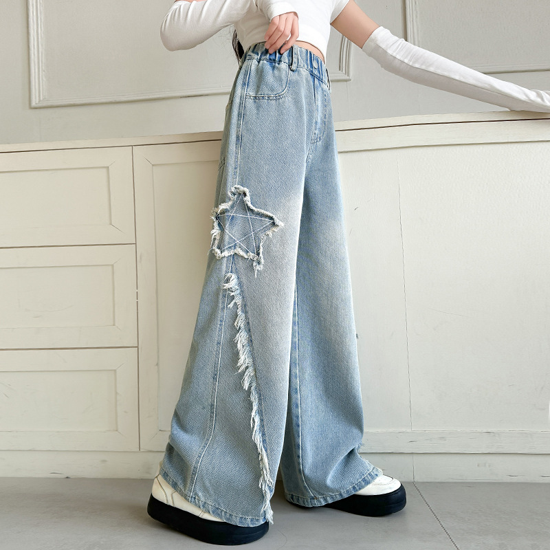 여아 바지 2025 봄 가을 새로운 스타일 중학생 청바지 중대형 아동 스트레이트 와이드 팬츠