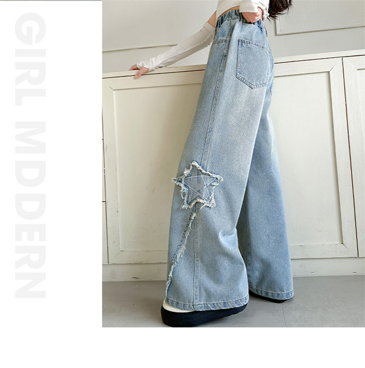 여아 바지 2025 봄 가을 새로운 스타일 중학생 청바지 중대형 아동 스트레이트 와이드 팬츠스토어 가기