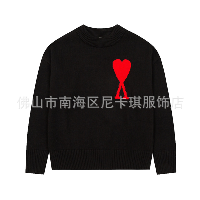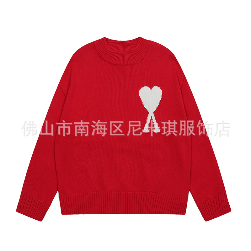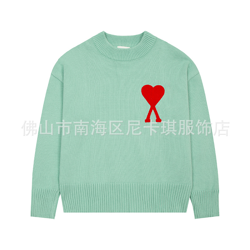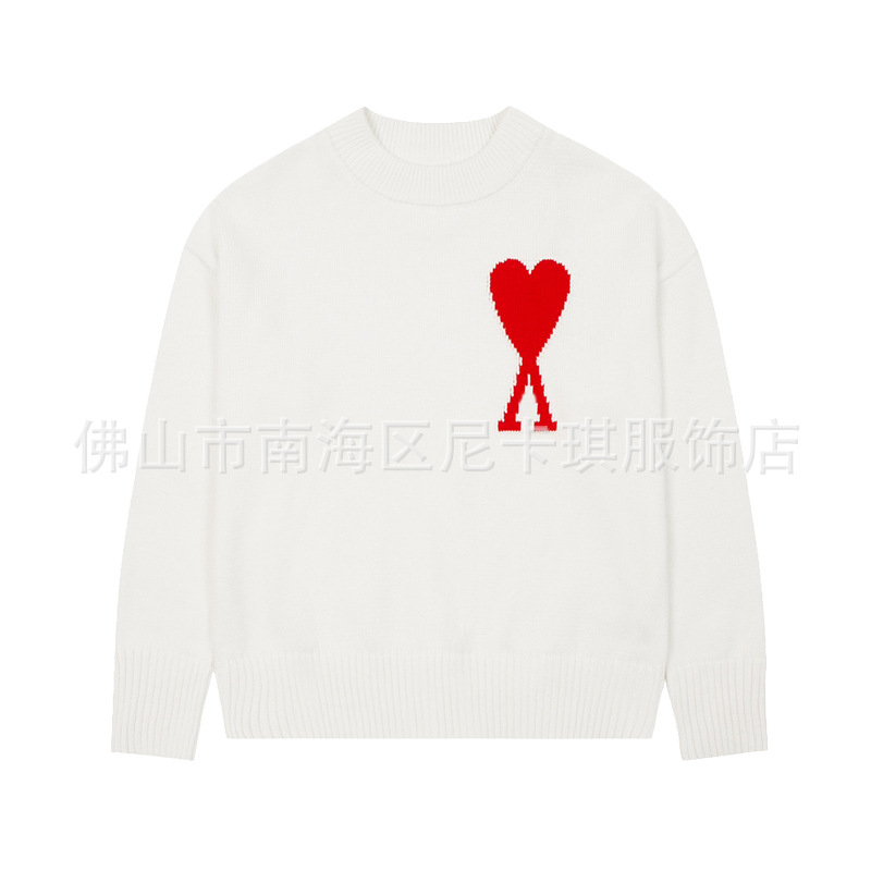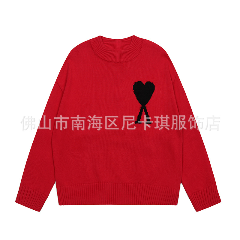 헤비급! ami 스웨터 라운드 넥 빅 러브 25ss 새로운 커플 느슨한 긴팔 크로스 보더 울 여성 스웨터스토어 가기
