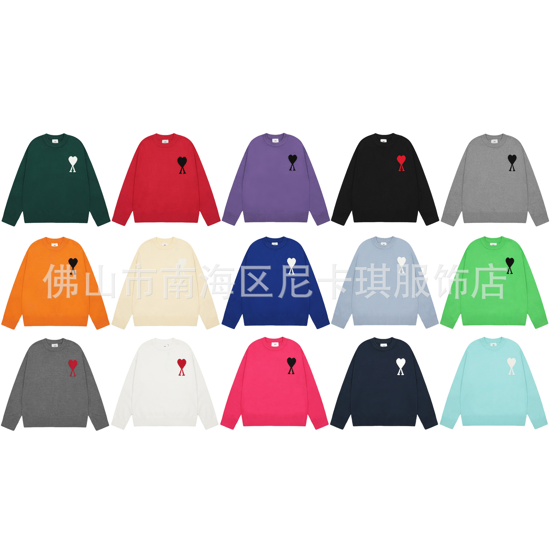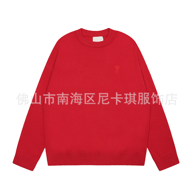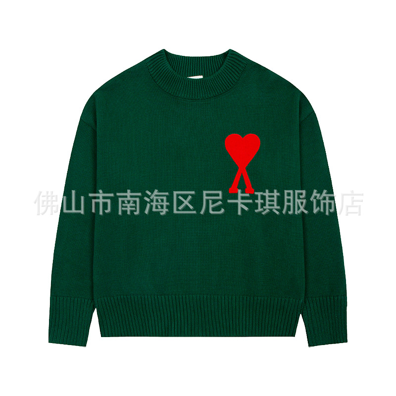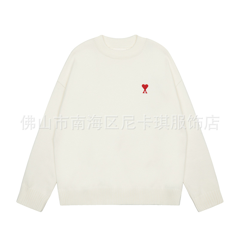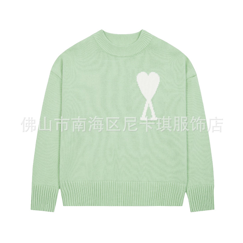 헤비급! ami 스웨터 라운드 넥 빅 러브 25ss 새로운 커플 느슨한 긴팔 크로스 보더 울 여성 스웨터스토어 가기