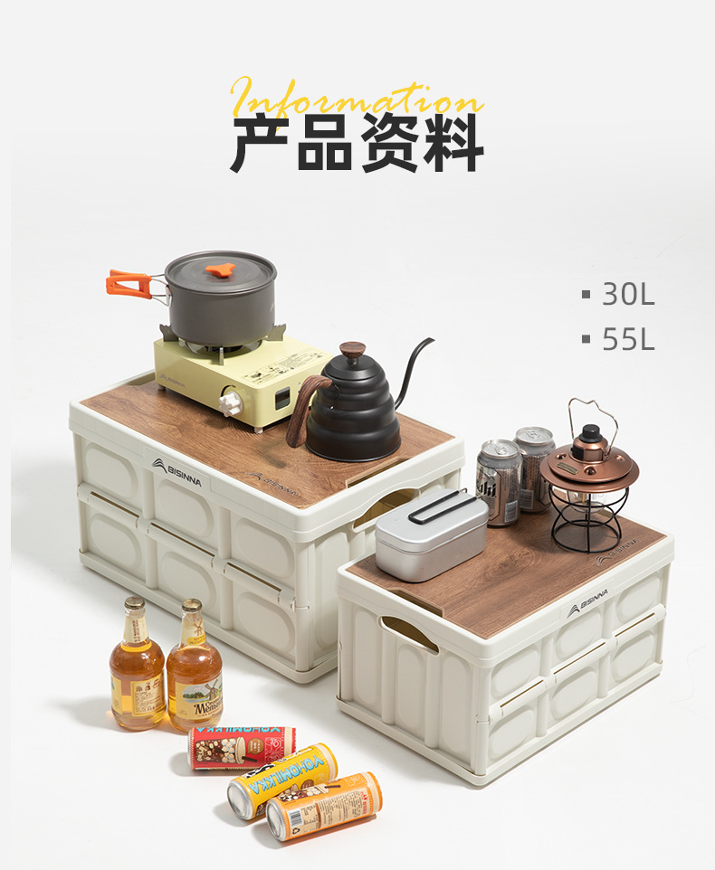 Beishanlang 보관 상자 야외 캠핑 접이식 휴대용 캠핑 자동차 트렁크 보관함 나무 커버