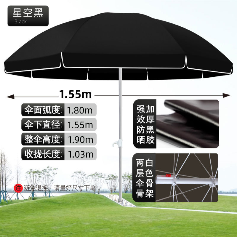 업그레이드된 블랙 비닐 차양 우산, 야외용 정원 우산, 상업용 노점용 특수 태양 우산, 노점용 우산, 두꺼운 우산스토어 가기