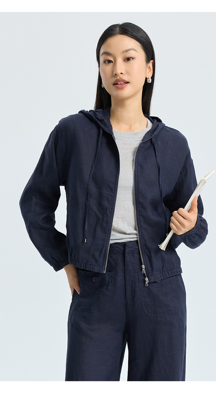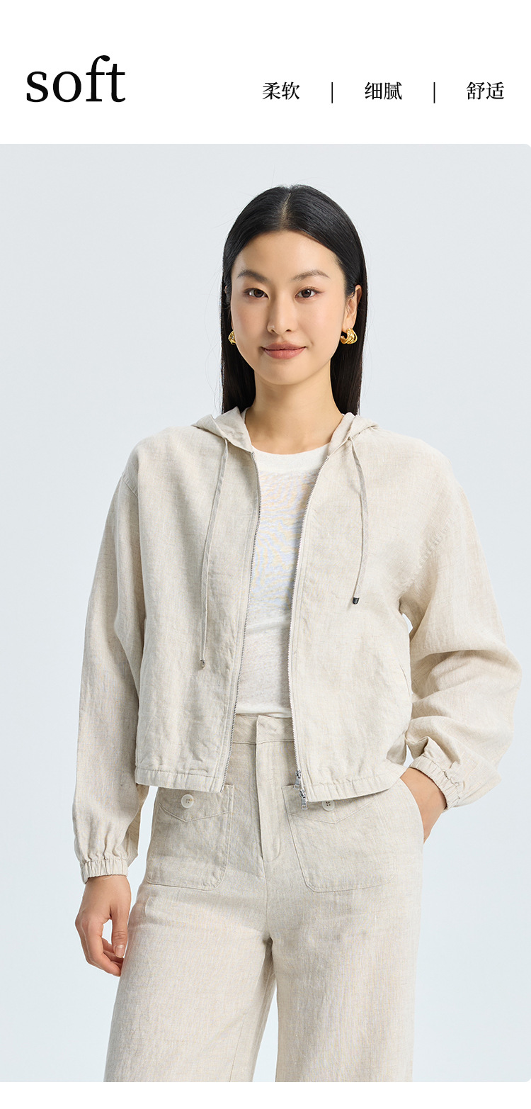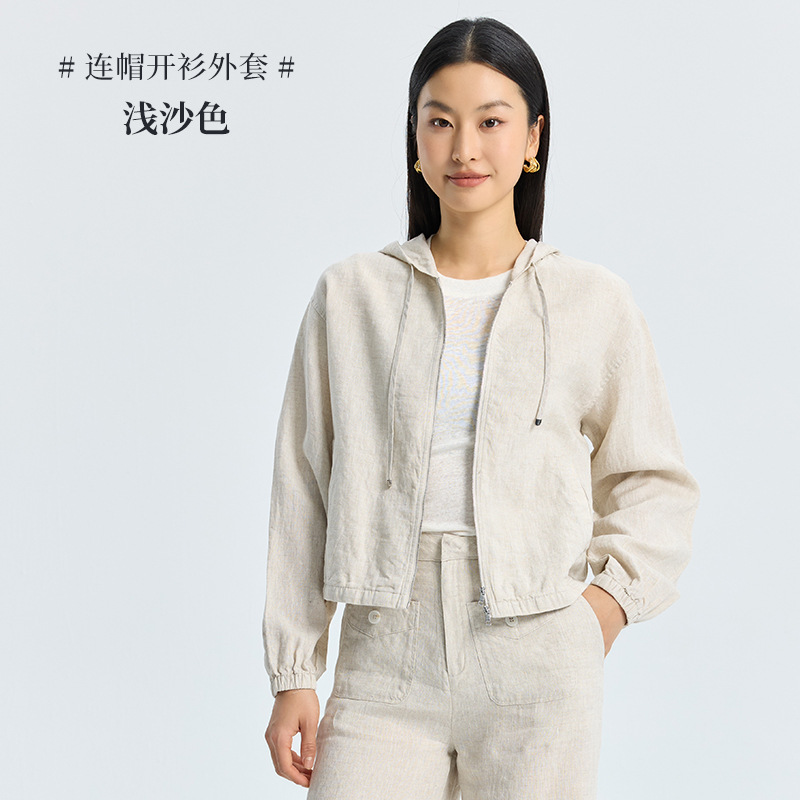 여성 리넨 코트 여름 새로운 얇은 느슨한 간단한 편안한 슬리밍 짠 리넨 후드 자켓 코트스토어 가기