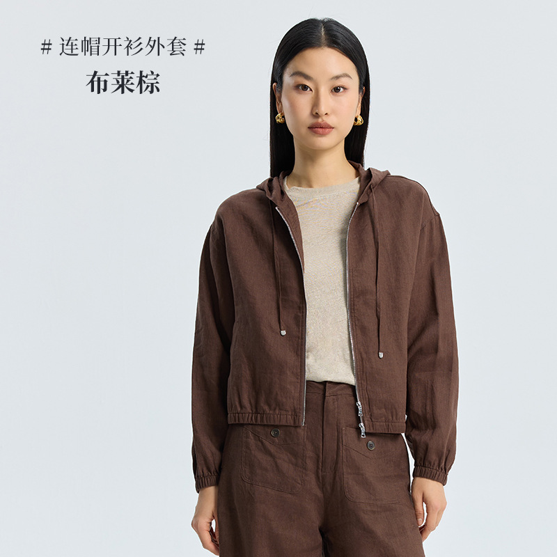 여성 리넨 코트 여름 새로운 얇은 느슨한 간단한 편안한 슬리밍 짠 리넨 후드 자켓 코트