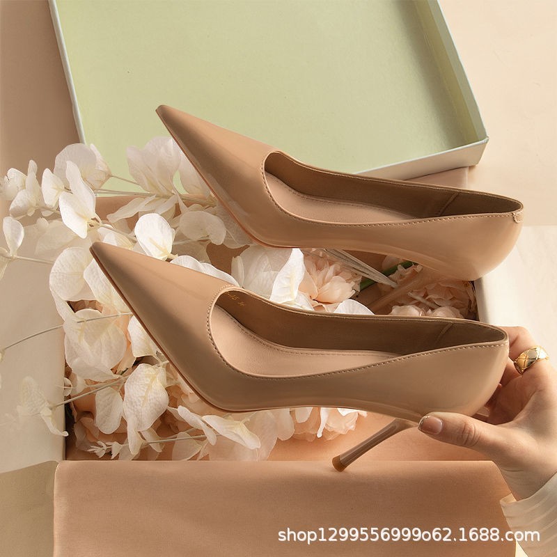 누드 섹시 스커트, 페이턴트 가죽 하이힐, 여성스러운 여성스러운 스틸레토 힐, 프렌치 소녀 포인티드 토 전문 여성용 슈즈