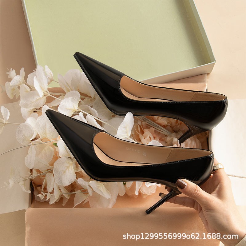 누드 섹시 스커트, 페이턴트 가죽 하이힐, 여성스러운 여성스러운 스틸레토 힐, 프렌치 소녀 포인티드 토 전문 여성용 슈즈스토어 가기