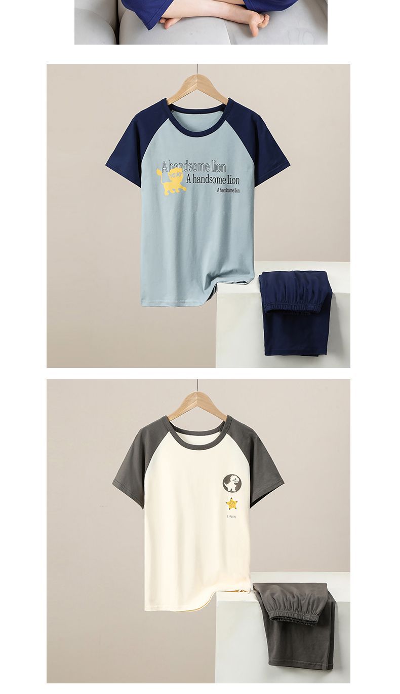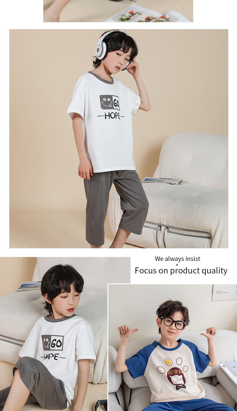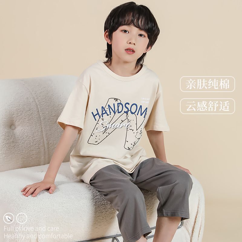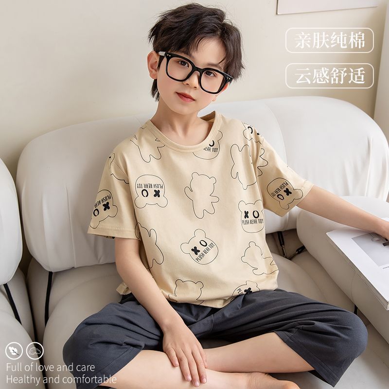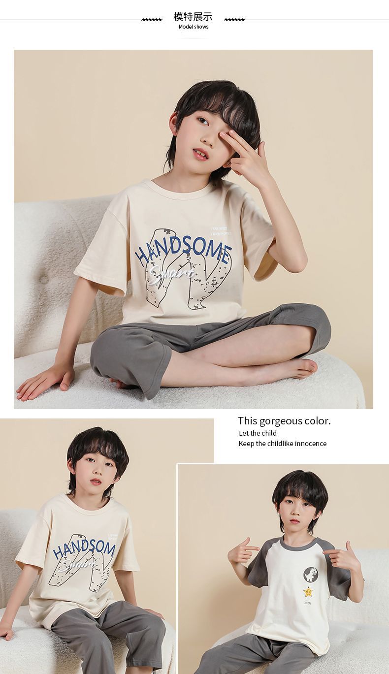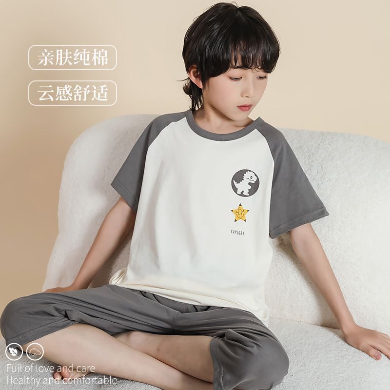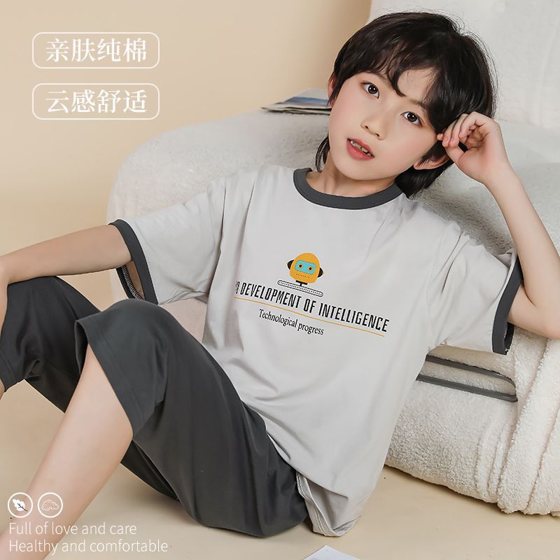아동 잠옷, 남아 가정복, 청소년 순면 반팔 양복, 얇은 남학생 에어컨 양복, 아동 여름스토어 가기