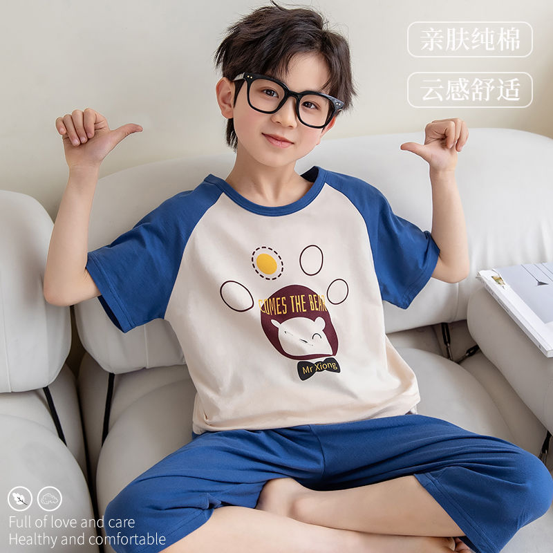 아동 잠옷, 남아 가정복, 청소년 순면 반팔 양복, 얇은 남학생 에어컨 양복, 아동 여름