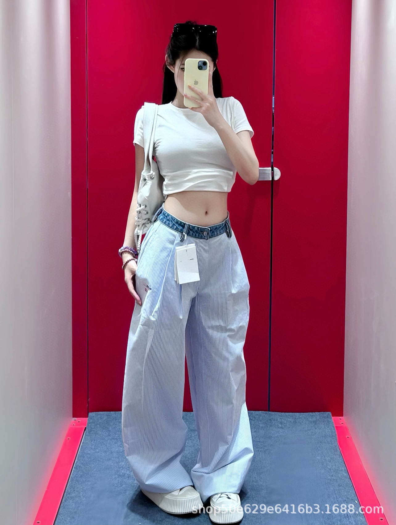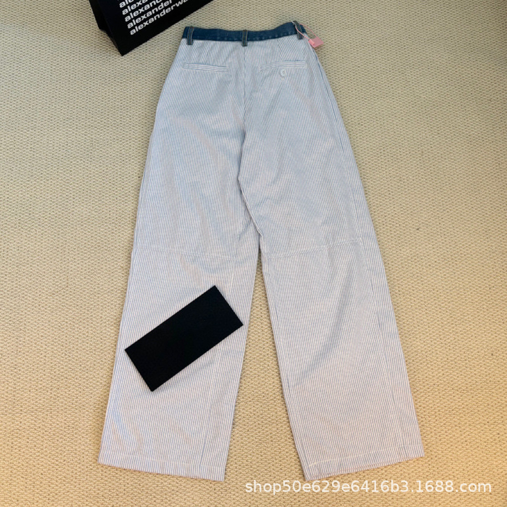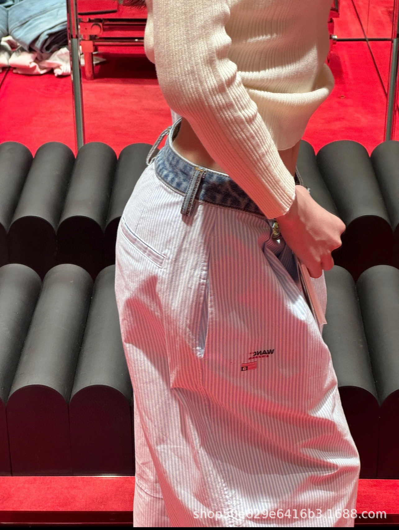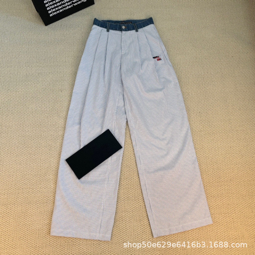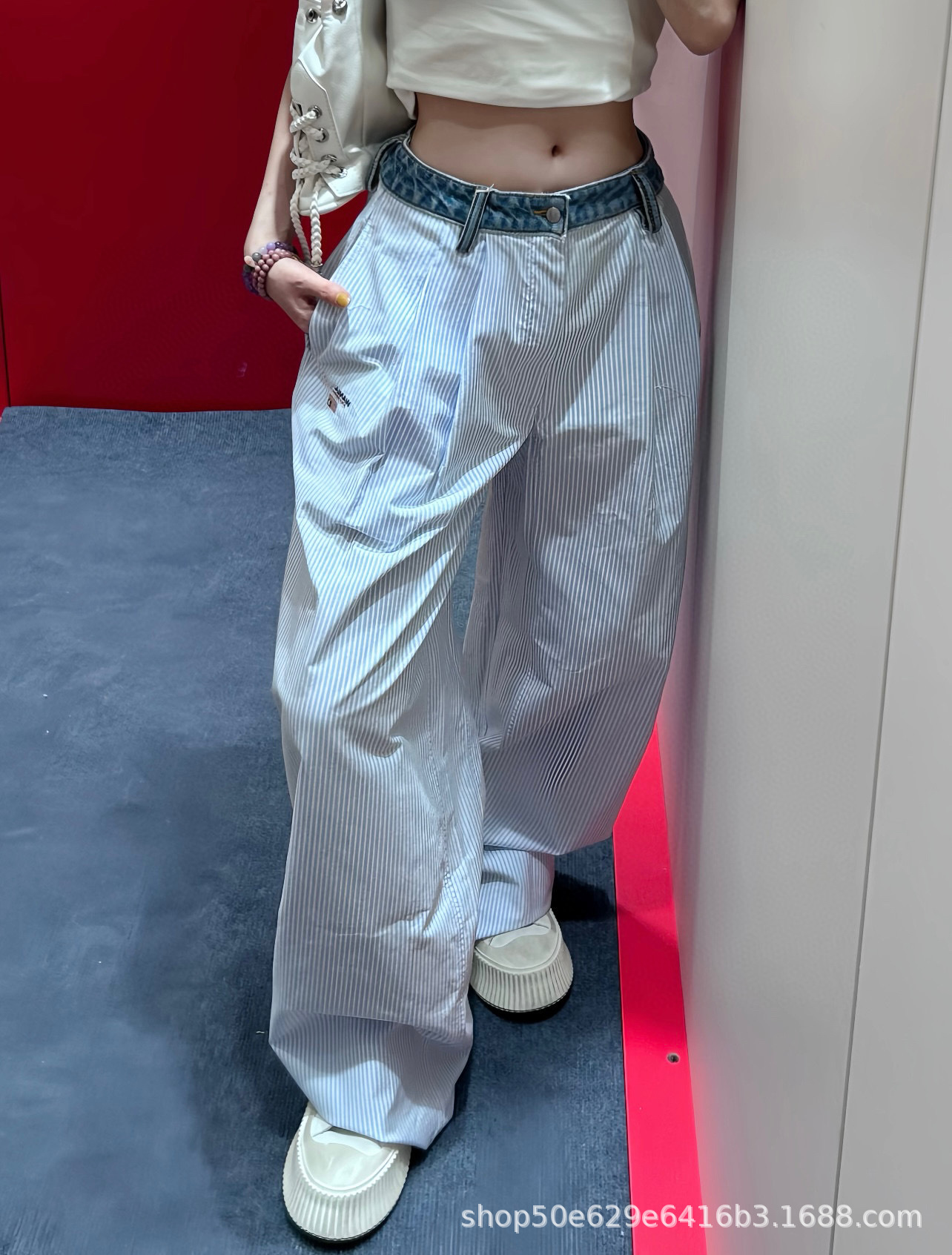 Spot 2025 봄 여름 신작 AW 데님 허리 스트라이프 스플리싱 디자인 루즈 캐주얼 바지 여성 바지스토어 가기