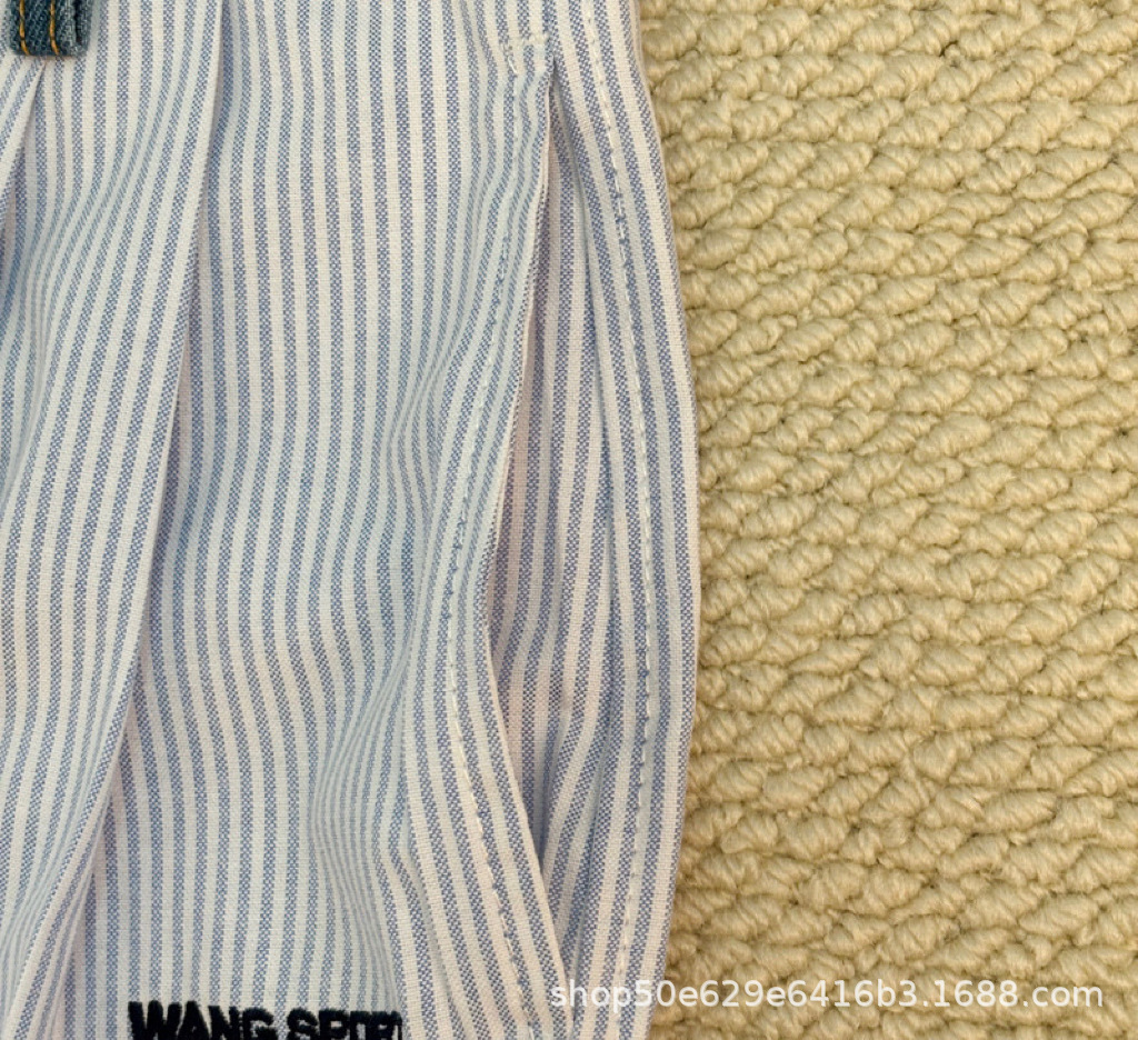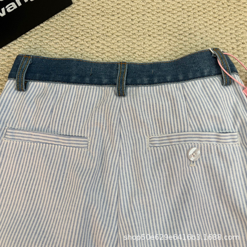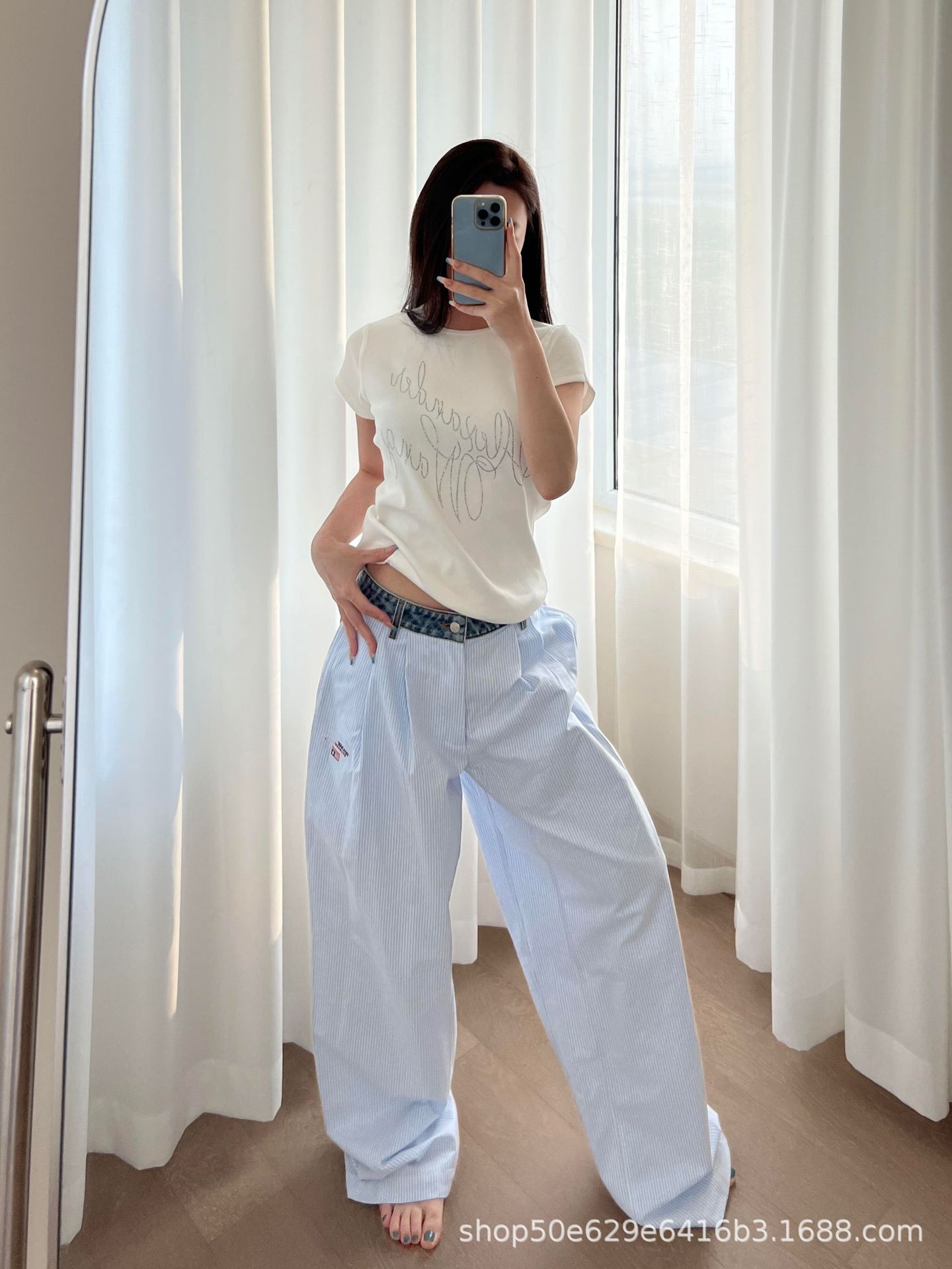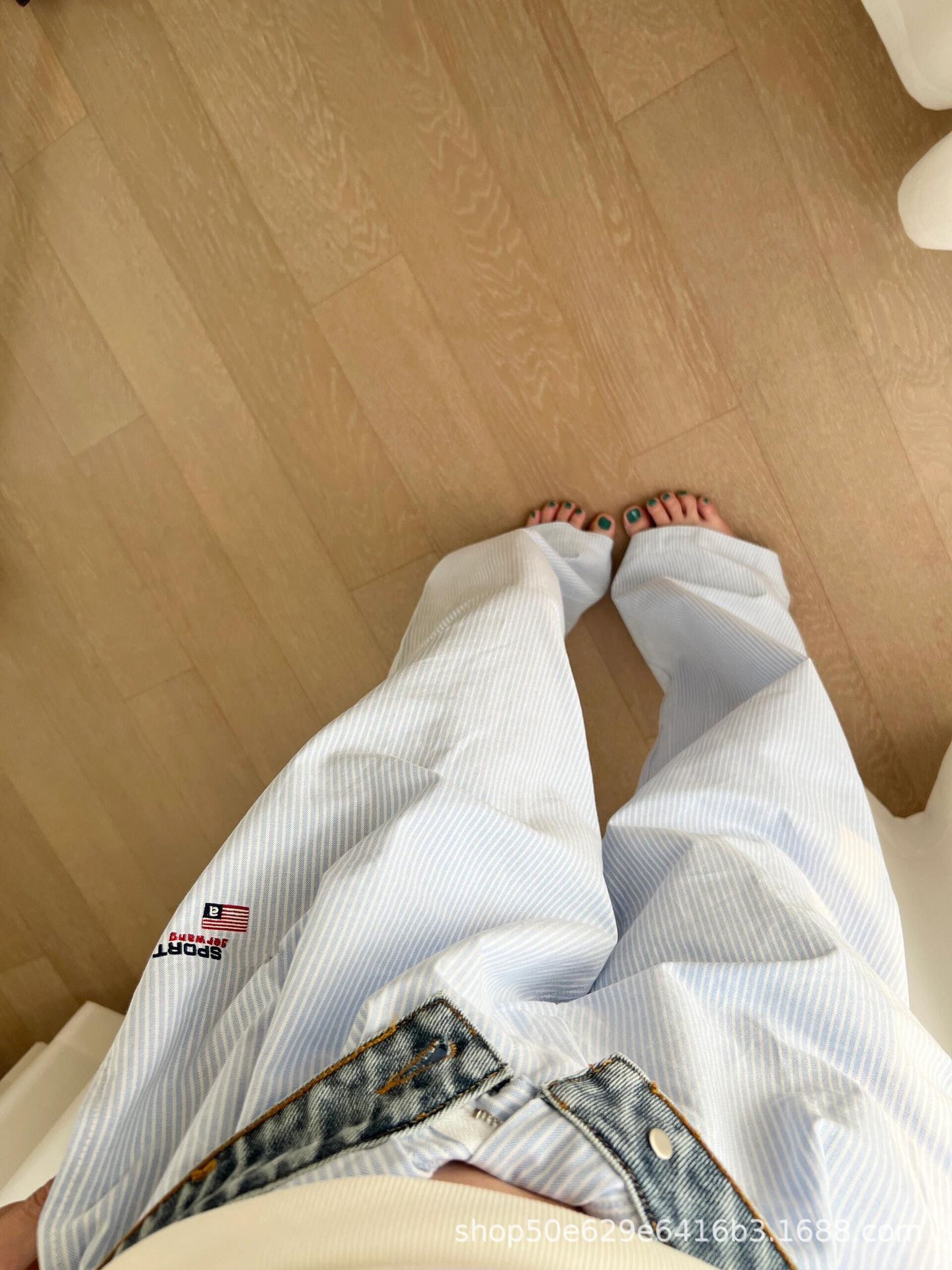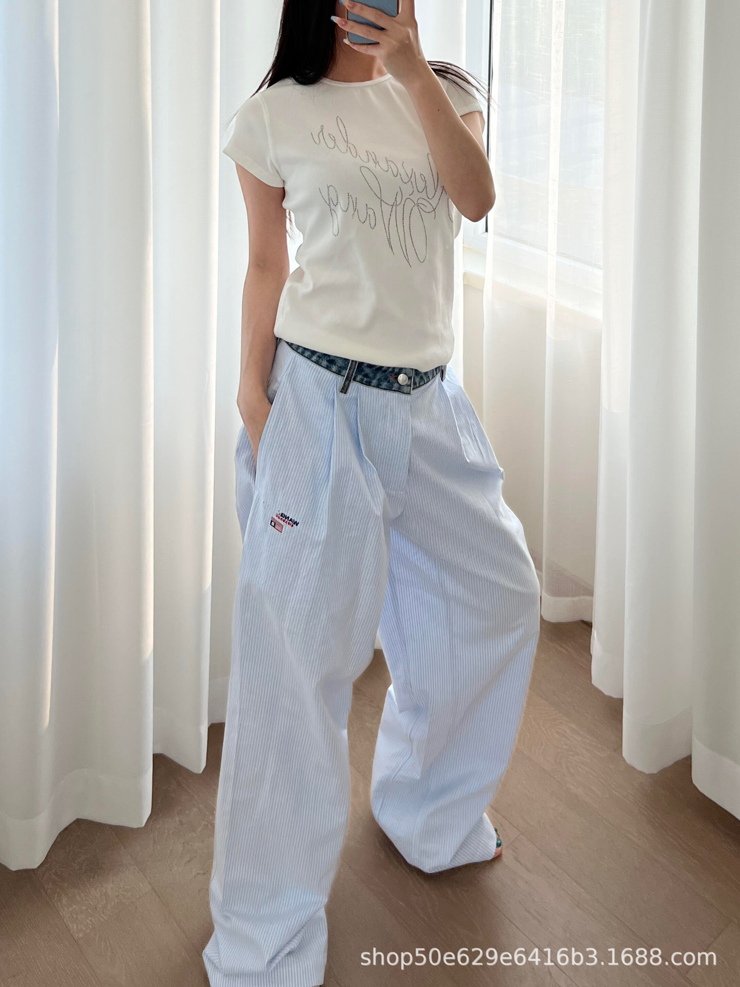 Spot 2025 봄 여름 신작 AW 데님 허리 스트라이프 스플리싱 디자인 루즈 캐주얼 바지 여성 바지스토어 가기