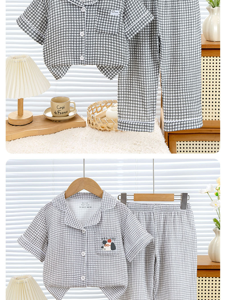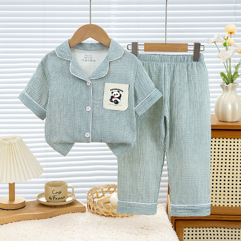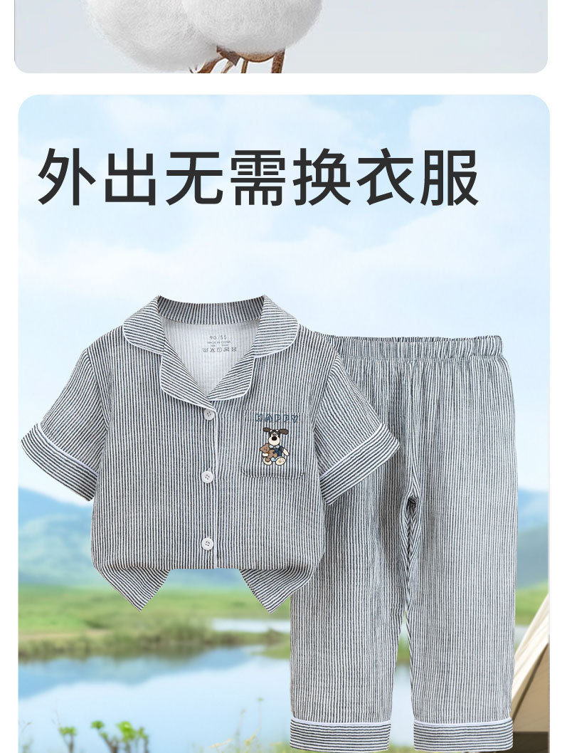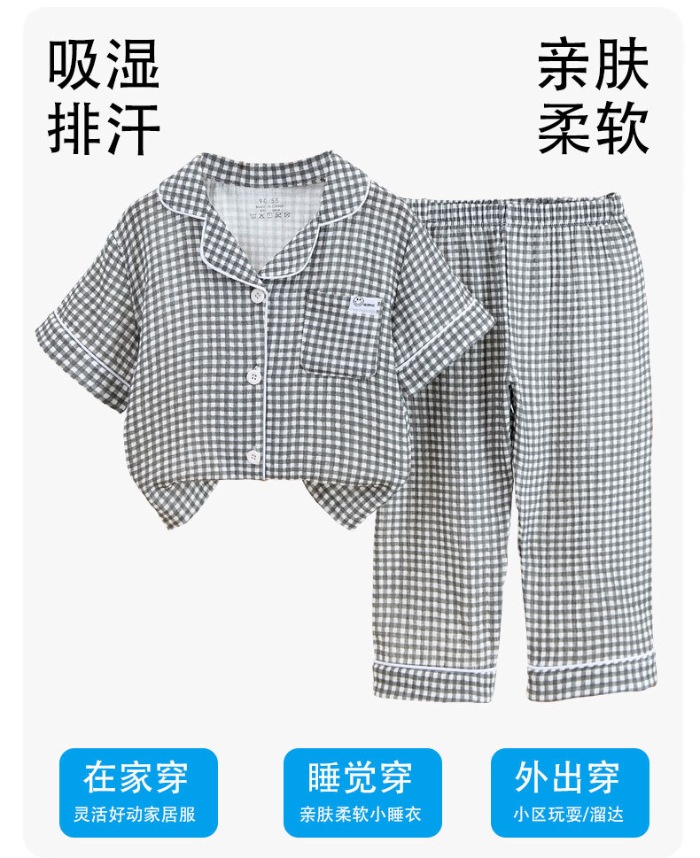아동용 잠옷, 남아용 순면 거즈 여름 얇은 중대형 아동복 세트, 반팔 여아용 에어컨 의류스토어 가기