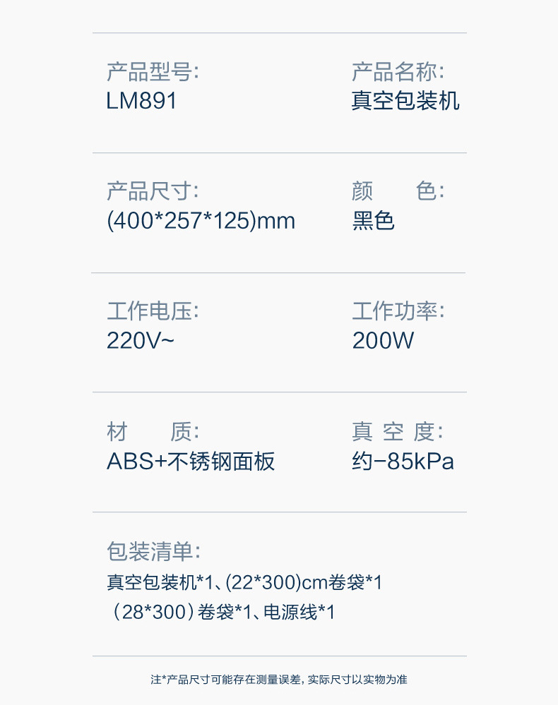 • LM891 진공 기계 + 22*30cm 진공 가방 100개 + 진공 롤 가방 2개