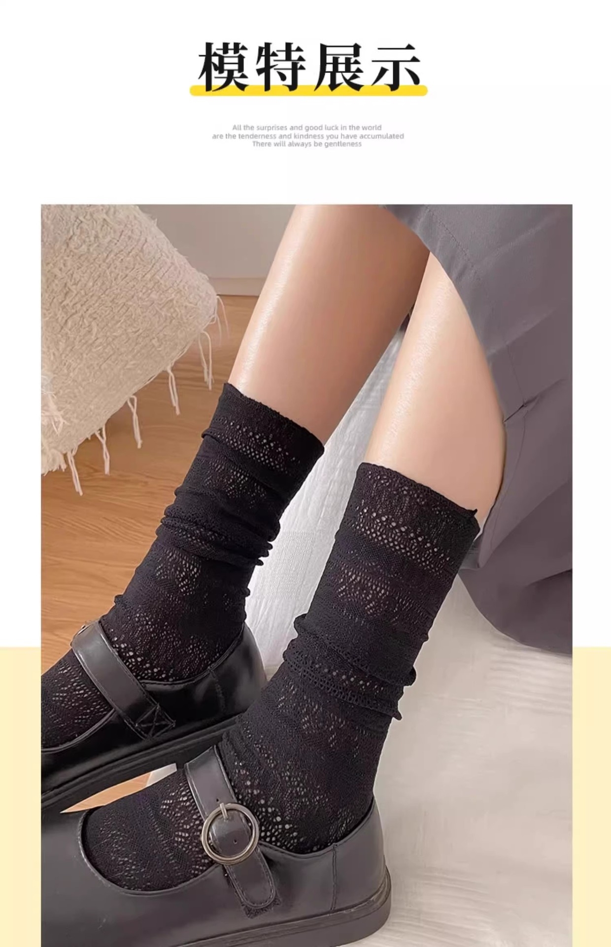 작은 가죽 신발과 어울리는 여성용 검은색 중공 메쉬 여름 얇고 통기성이 뛰어난 양말 miu 발레 스타일 여성용 양말스토어 가기