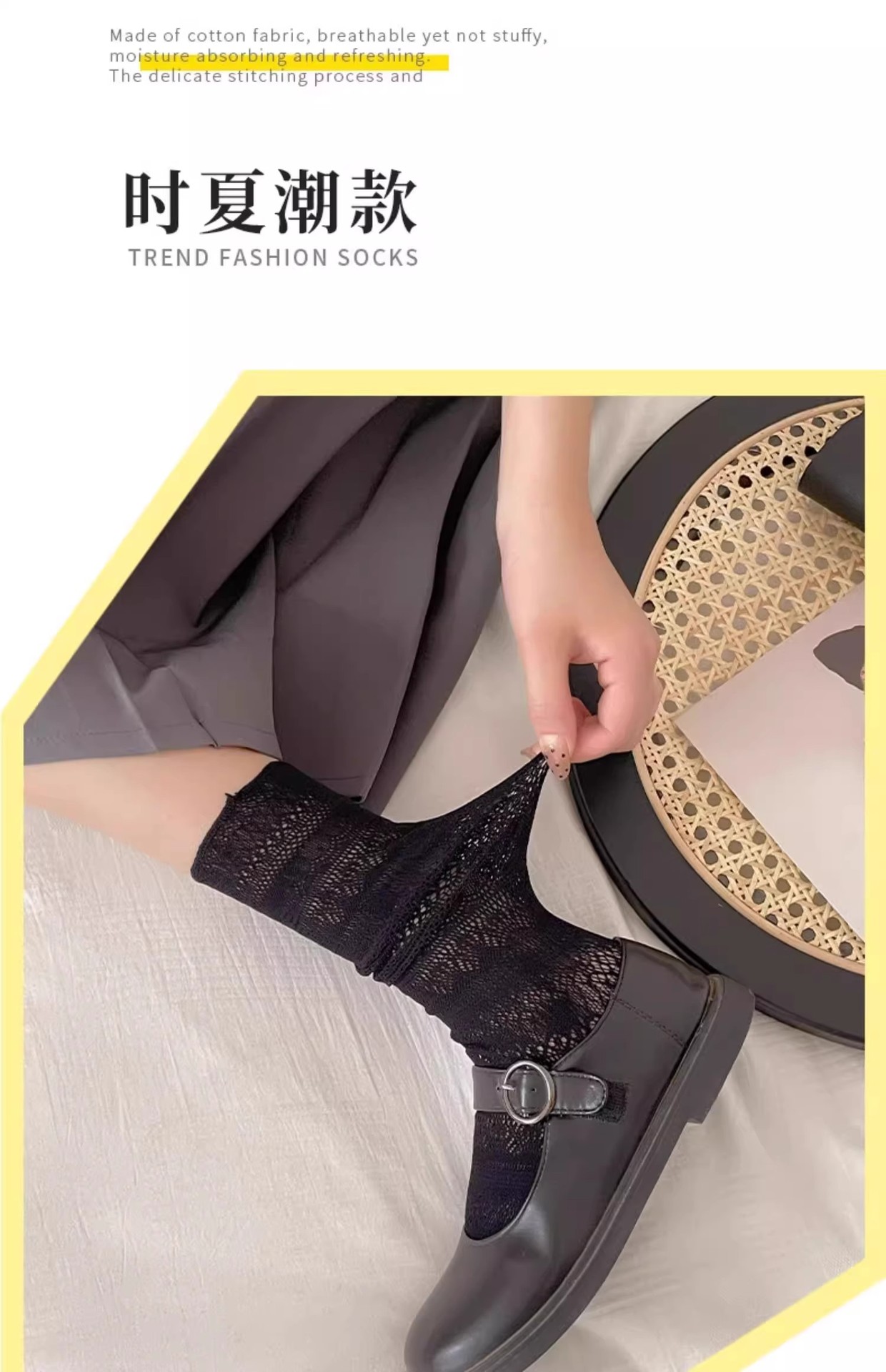 작은 가죽 신발과 어울리는 여성용 검은색 중공 메쉬 여름 얇고 통기성이 뛰어난 양말 miu 발레 스타일 여성용 양말
