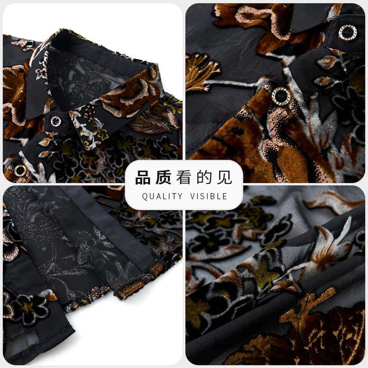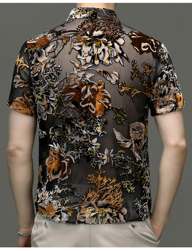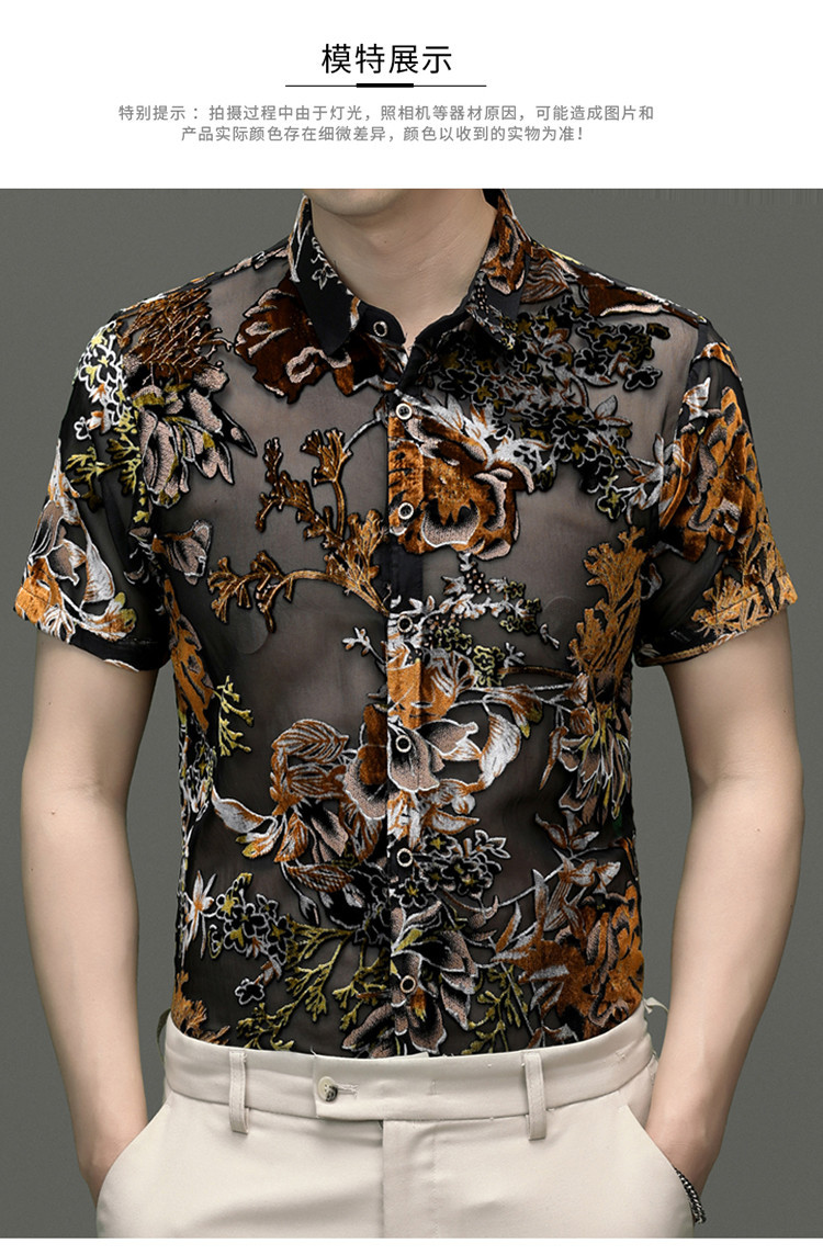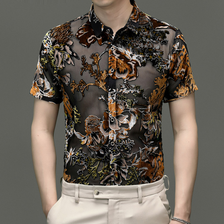 대외 무역 크로스보더 남성용 중공 라이트 럭셔리 일본과 한국 패션 캐주얼 여름 신작 프린트 다용도 남성 셔츠스토어 가기