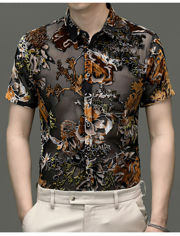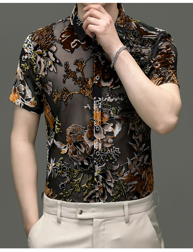 대외 무역 크로스보더 남성용 중공 라이트 럭셔리 일본과 한국 패션 캐주얼 여름 신작 프린트 다용도 남성 셔츠