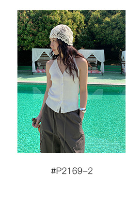 Wanwei 프랑스어 홀터넥 넥 서스펜더 여성 여름 새로운 스타일 어깨 핏 스트라이프 질감 슬림 니트 조끼 P3432