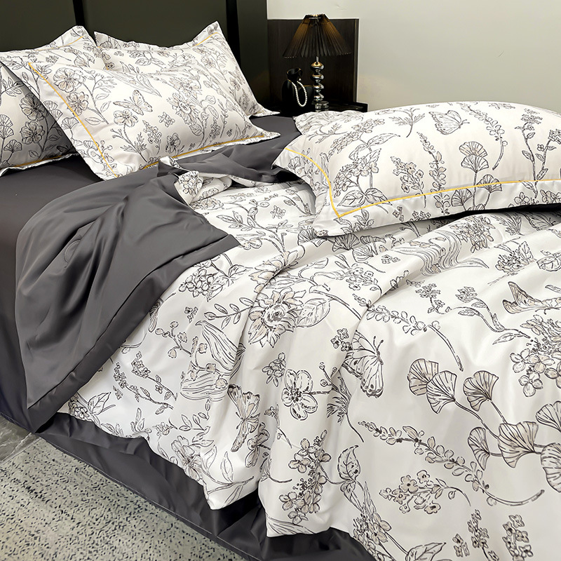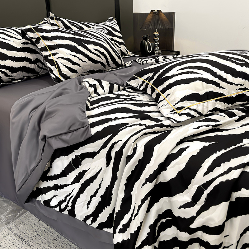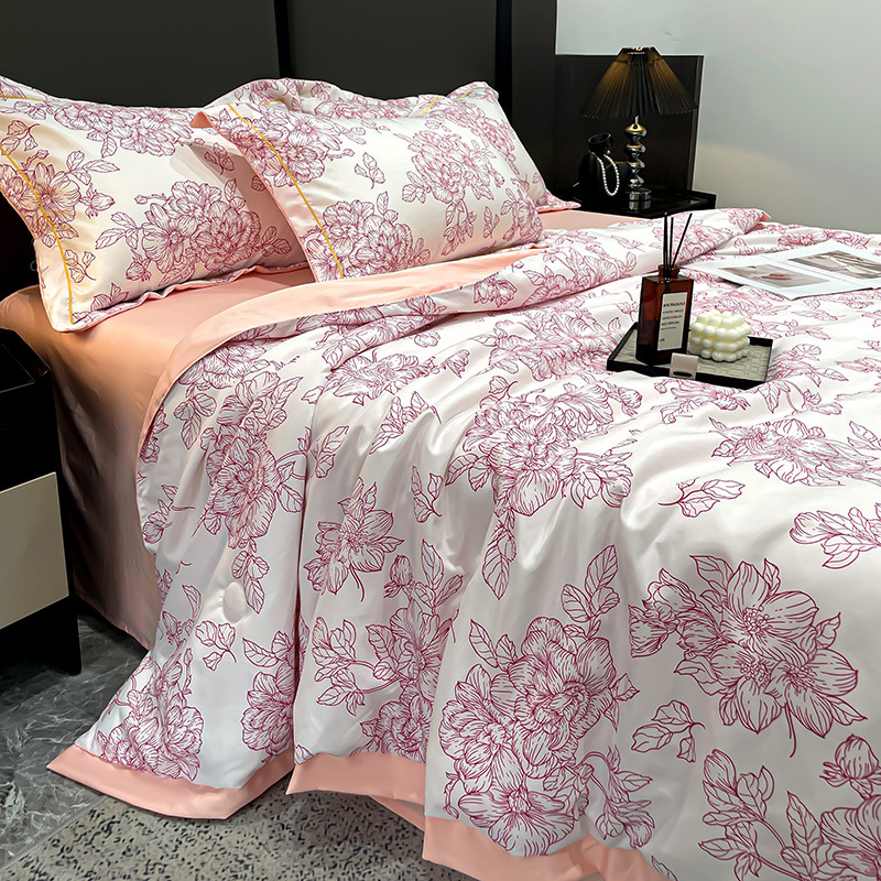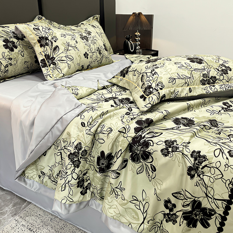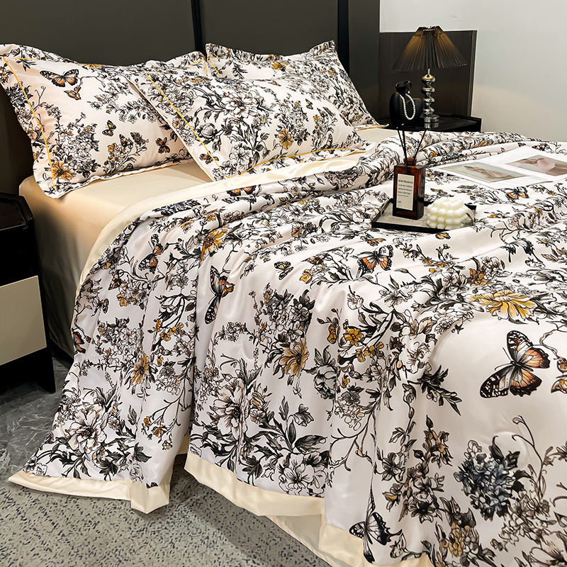 2025 새로운 프린트 워시 실크 여름 이불 여름 시원한 이불 에어컨 이불 4피스 세트 라이트 럭셔리 스타일 얇은 이불 dropshipping스토어 가기
