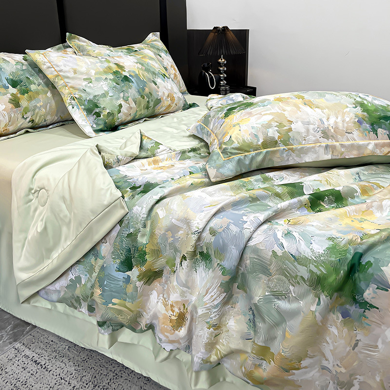 2025 새로운 프린트 워시 실크 여름 이불 여름 시원한 이불 에어컨 이불 4피스 세트 라이트 럭셔리 스타일 얇은 이불 dropshipping