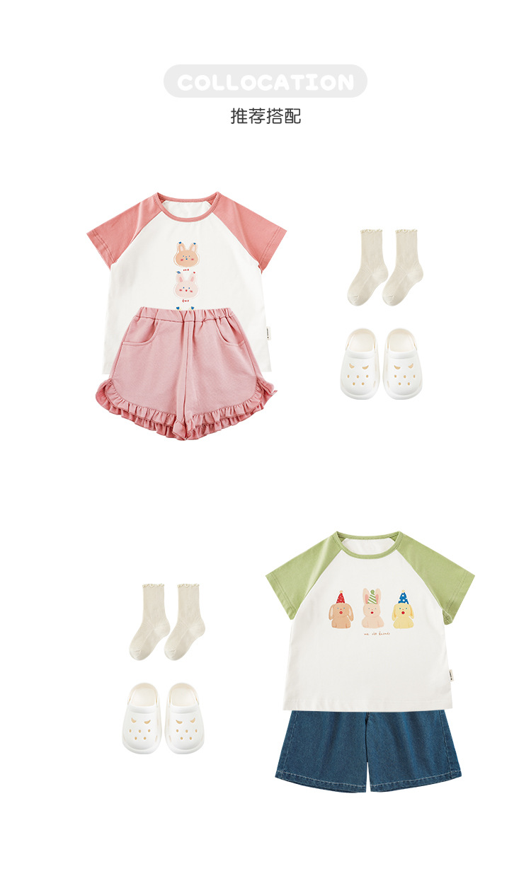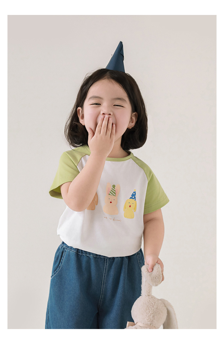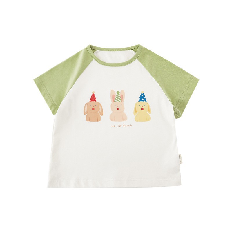 Wulibuyi 소녀 대비 색상 만화 라글란 슬리브 티셔츠 2025 여름 새로운 어린이 귀여운 느슨한 티셔츠 트렌드스토어 가기