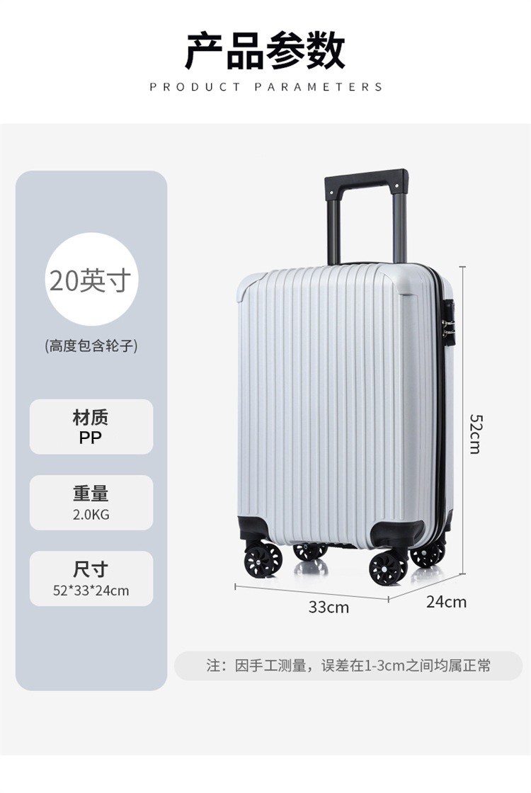 새로운 PP 소재 여행 가방 20inch 튼튼하고 내구성이 뛰어난 범용 휠 대용량 여행 가방 탑승 트롤리 케이스스토어 가기