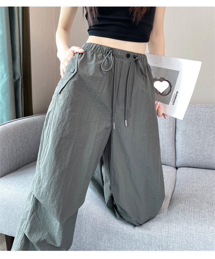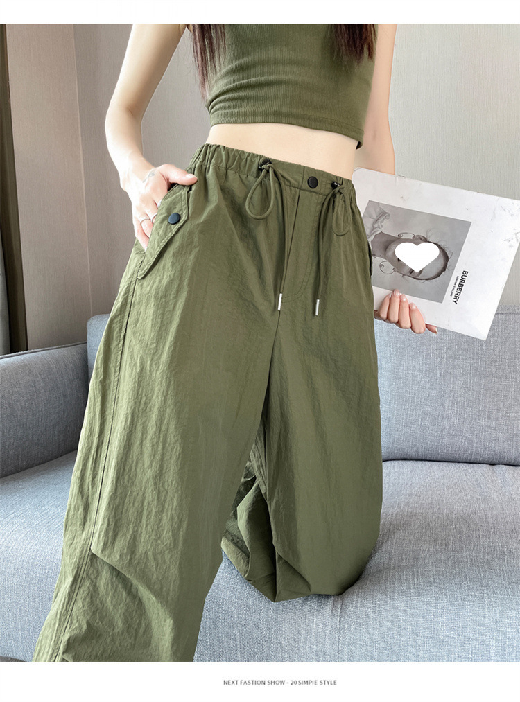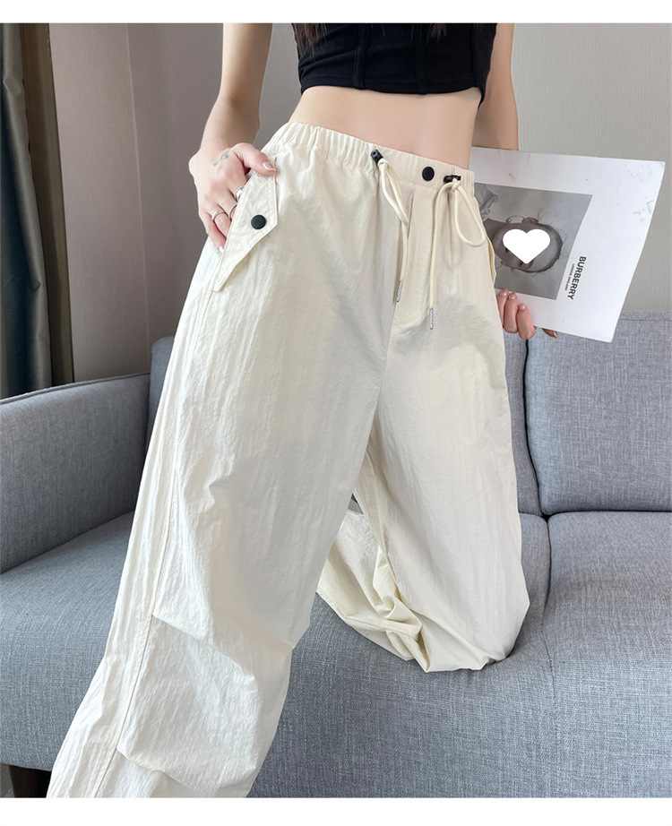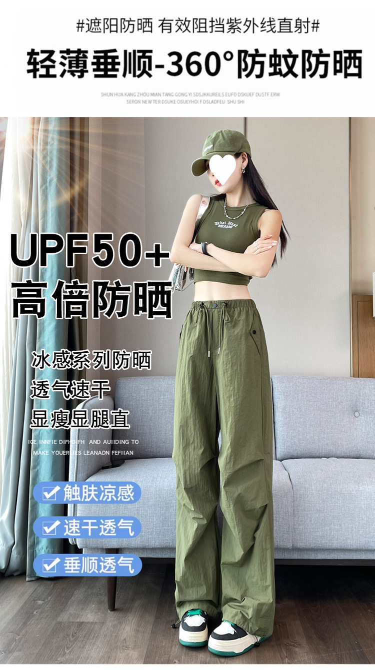 여성을위한 와이드 레그 투웨어 속건성 오버올 2025 여름 드로스트링 신축성있는 허리 자외선 차단제 등산 여행 캐주얼 바지