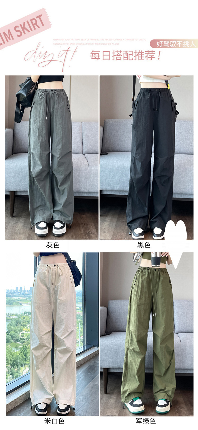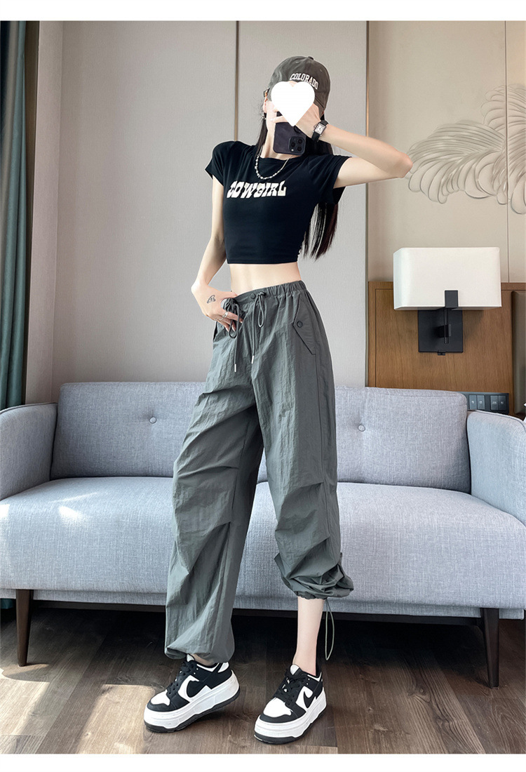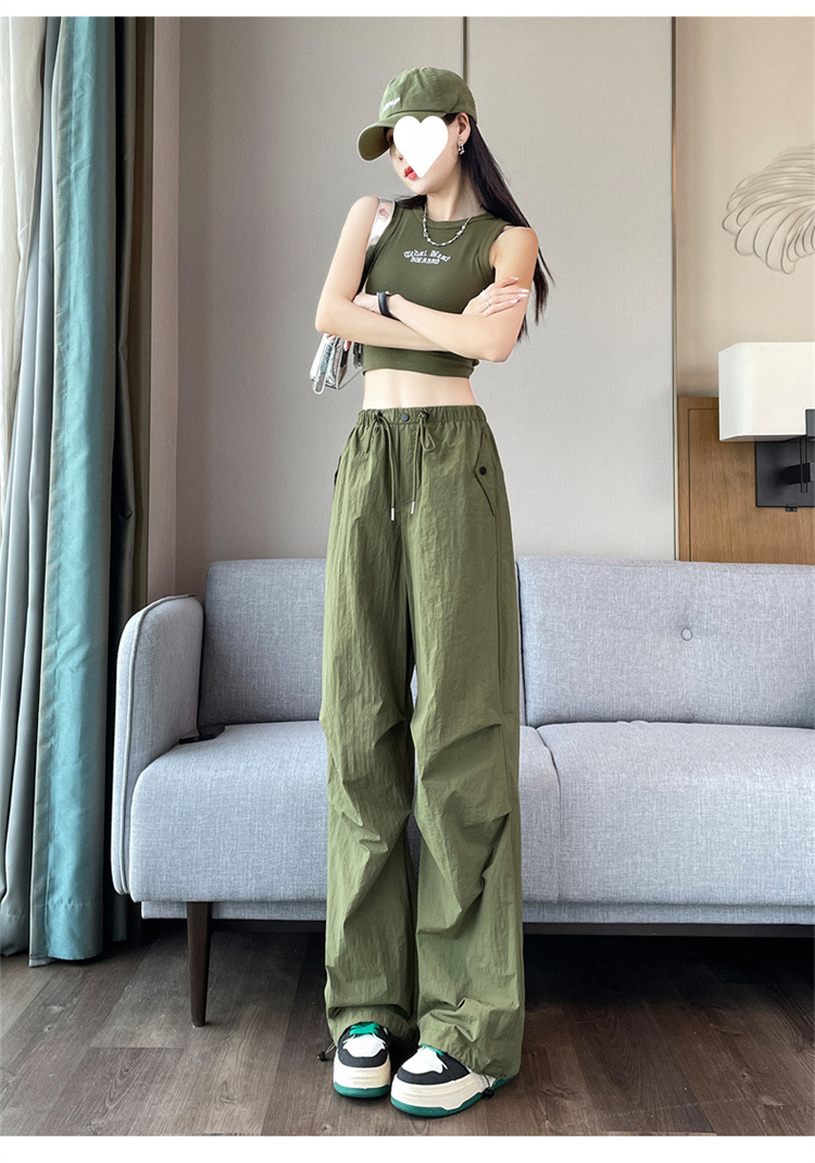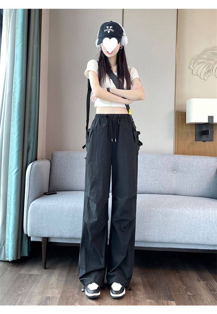 여성을위한 와이드 레그 투웨어 속건성 오버올 2025 여름 드로스트링 신축성있는 허리 자외선 차단제 등산 여행 캐주얼 바지